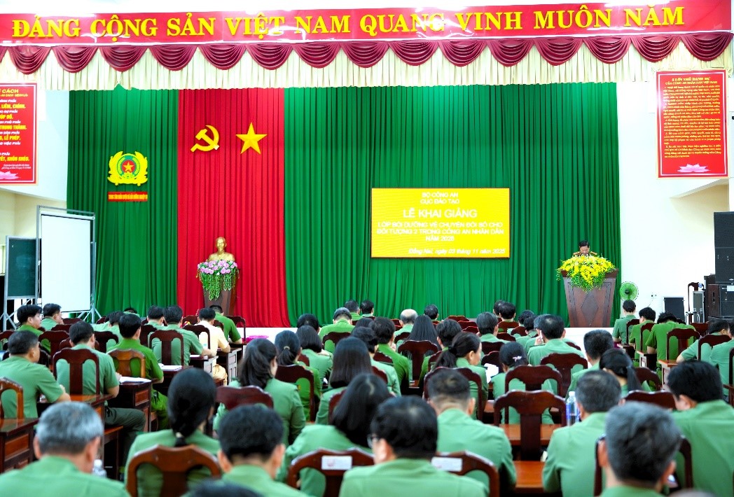 Dự và chỉ đạo buổi lễ có Đại tá Hoàng Đại Nghĩa - Phó Cục trưởng Cục Đào tạo, Bộ Công an và Đại tá Lâm Văn Long - Phó Giám đốc Công an tỉnh Đồng Nai. Tham dự Lễ còn có lãnh đạo Phòng Tổ chức cán bộ, Trung tâm Huấn luyện và Bồi dưỡng nghiệp vụ Công an tỉnh, các giảng viên cùng gần 200 học viên là lãnh đạo các đơn vị nghiệp vụ thuộc Công an tỉnh.