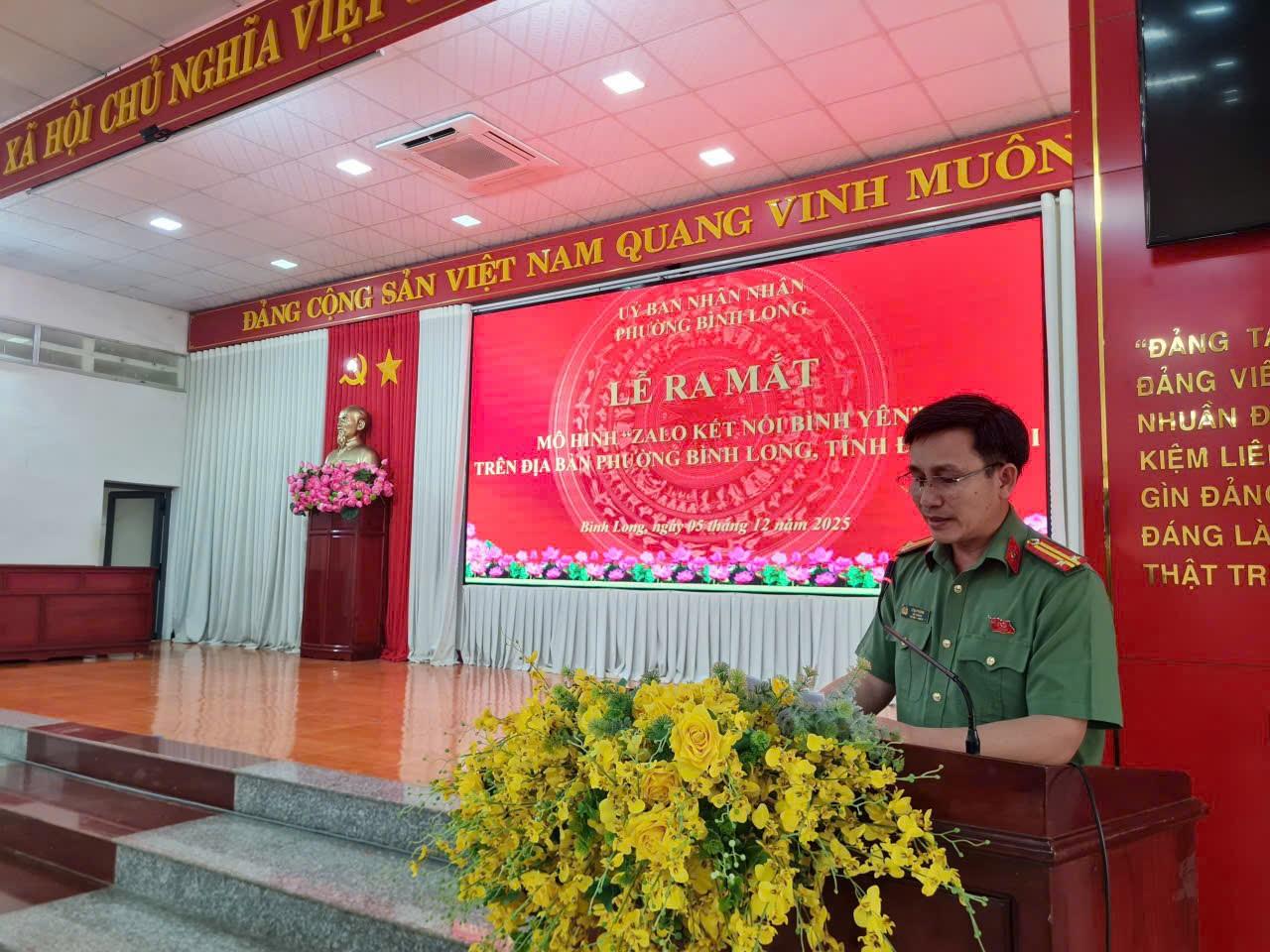 Phát biểu tại buổi Lễ, đồng chí Trung tá Lê Bá Phương nhấn mạnh: Mô hình “Zalo kết nối bình yên” là kênh tương tác hiện đại, tạo cầu nối quan trọng giữa chính quyền - Công an - Nhân dân; giúp tiếp nhận thông tin nhanh chóng, tuyên truyền pháp luật hiệu quả, giải quyết kịp thời phản ánh của người dân và góp phần xây dựng, củng cố phong trào Toàn dân bảo vệ an ninh Tổ quốc.