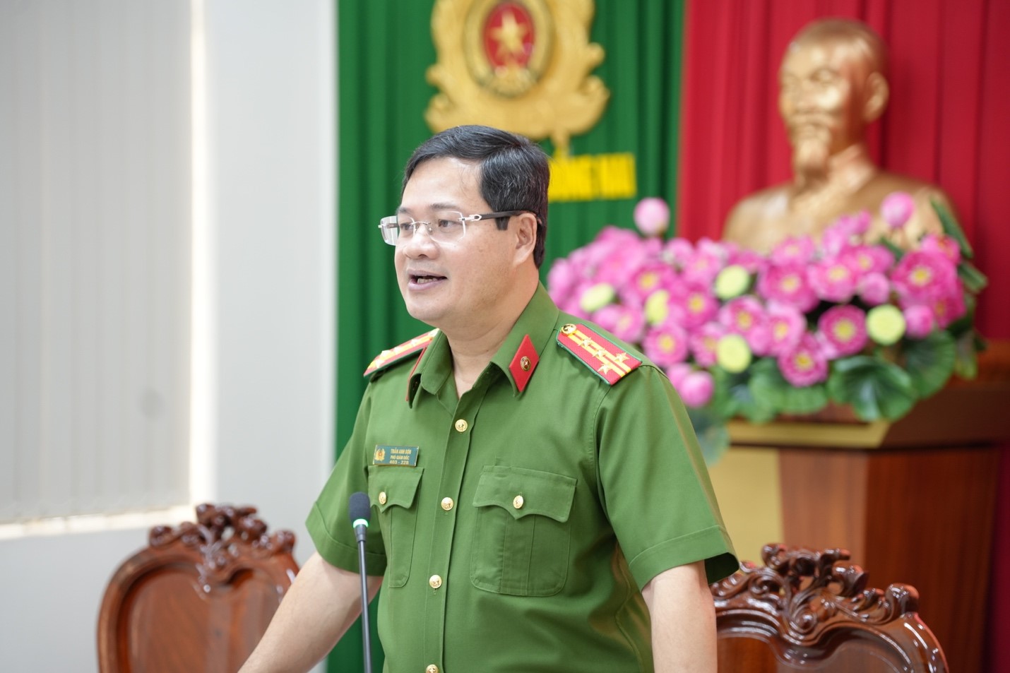 Đại tá Trần Anh Sơn, Phó Giám đốc Công an tỉnh phát biểu chỉ đạo buổi làm việc