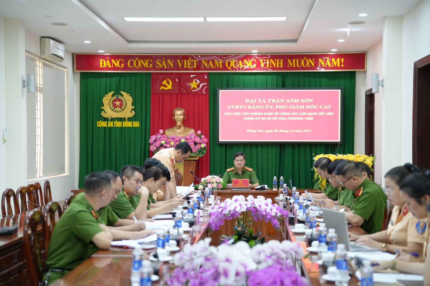 Phát biểu chỉ đạo buổi làm việc, Đại tá Trần Anh Sơn, Phó Giám đốc Công an tỉnh đề nghị Phòng Cảnh sát giao thông tiếp tục theo dõi sát “bảng thống kê tiến độ” của từng xã, đánh giá cụ thể xã nào làm tốt, chưa tốt để kịp thời chấn chỉnh. Phó Giám đốc Công an tỉnh cũng yêu cầu Phòng Cảnh sát giao thông, Công an cấp xã tăng tốc, tăng ca, tăng trách nhiệm, tập trung khắc phục những khó khăn, xác định phương hướng nhiệm vụ, phương pháp, cách làm để mang lại kết quả cao nhất, bảo đảm tiến độ cho công tác làm sạch dữ liệu đăng ký xe và số hoá phương tiện.
