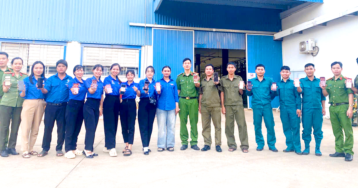 Công an xã Lộc Hưng phối hợp với Đoàn Thanh xã và Công ty Shiyang tổ chức tuyên truyền, hướng dẫn cài đặt ứng dụng VneTraffic.