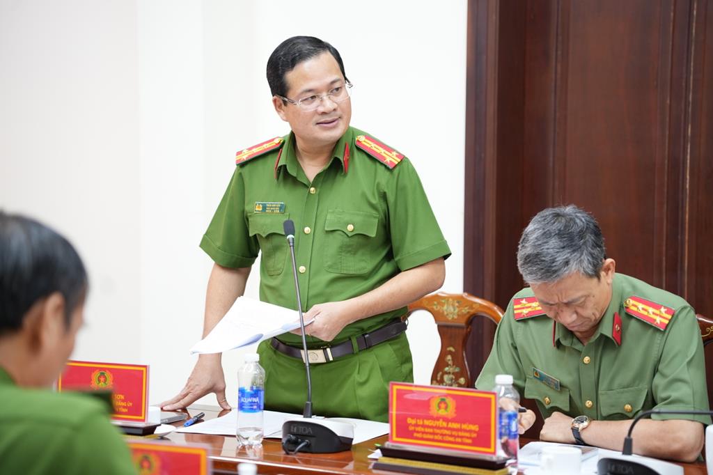 Đại tá Trần Anh Sơn, Phó Giám đốc Công an tỉnh phát biểu tại Hội nghị