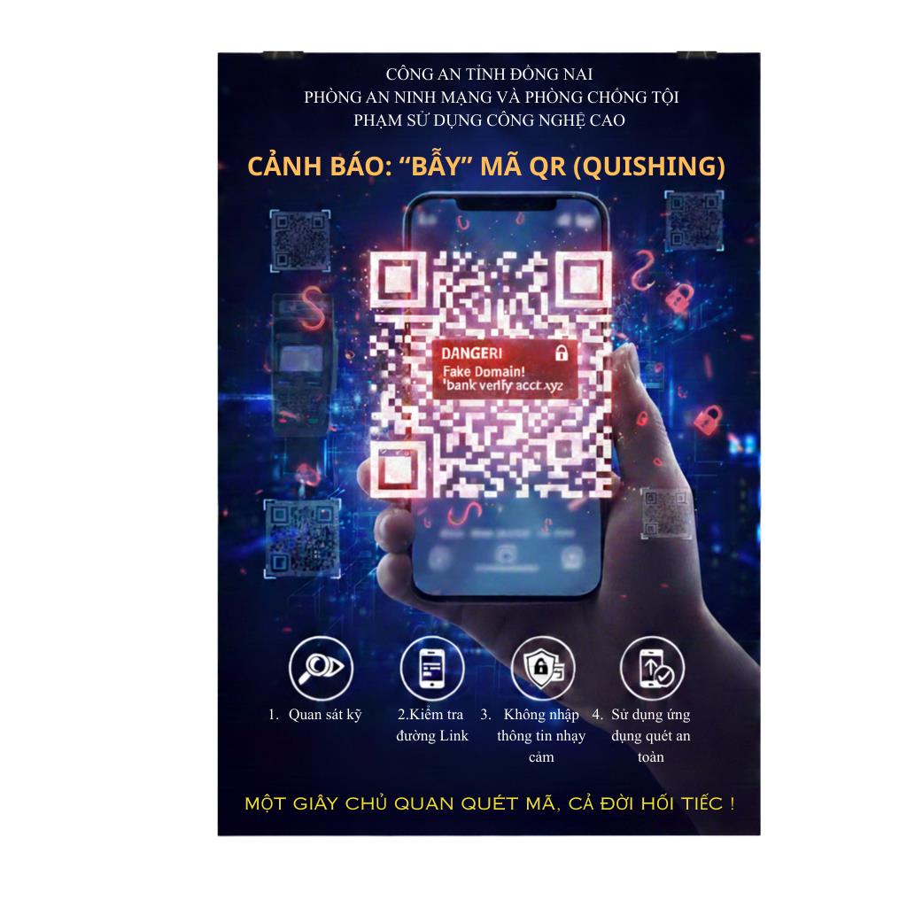 3. KHÔNG NHẬP THÔNG TIN NHẠY CẢM: Không bao giờ nhập mật khẩu ngân hàng, mã OTP hoặc thông tin cá nhân vào các trang web được mở ra từ mã QR không rõ nguồn gốc.