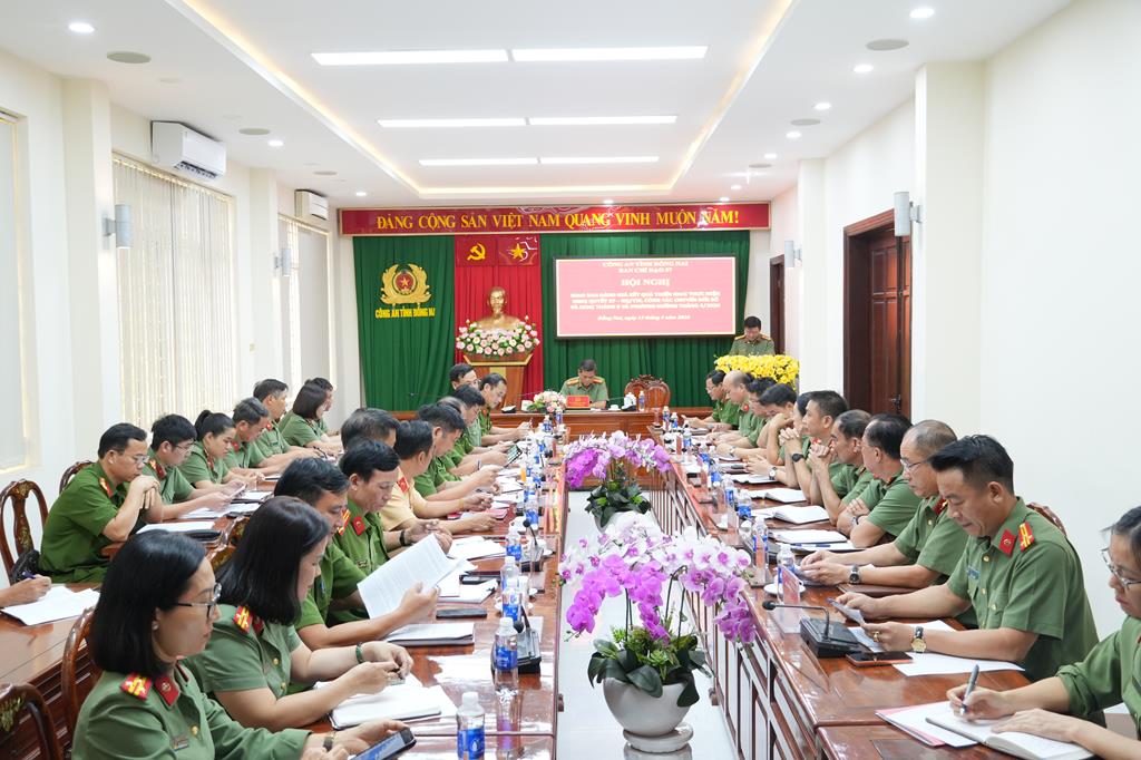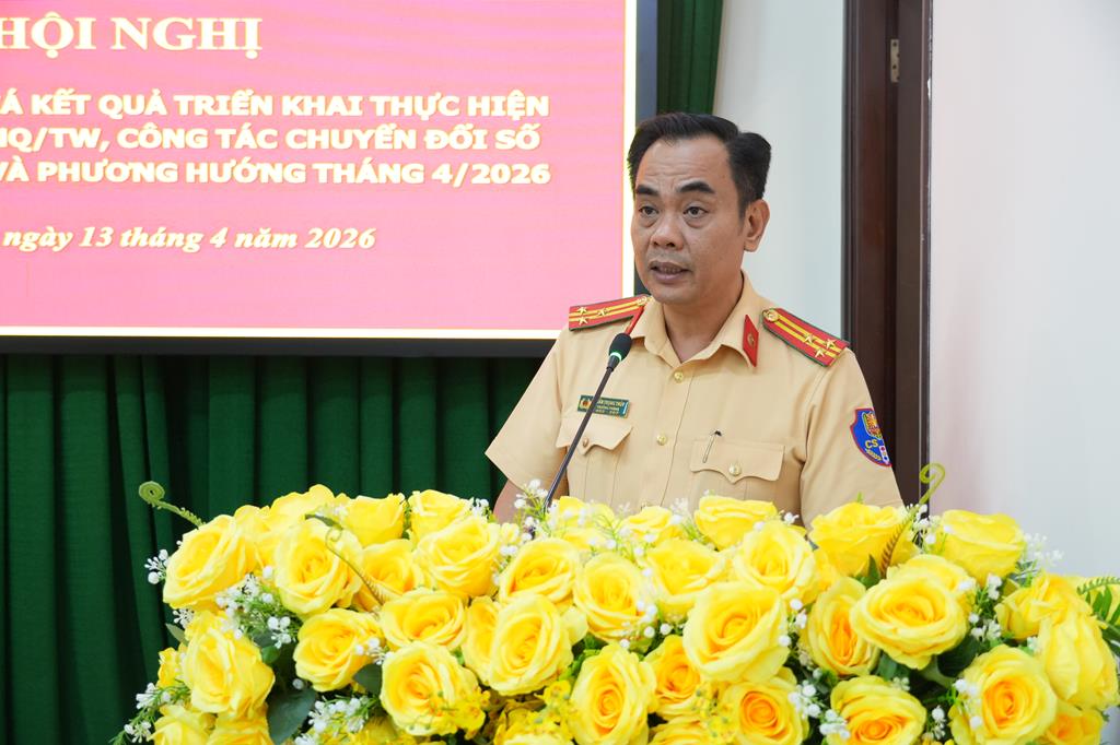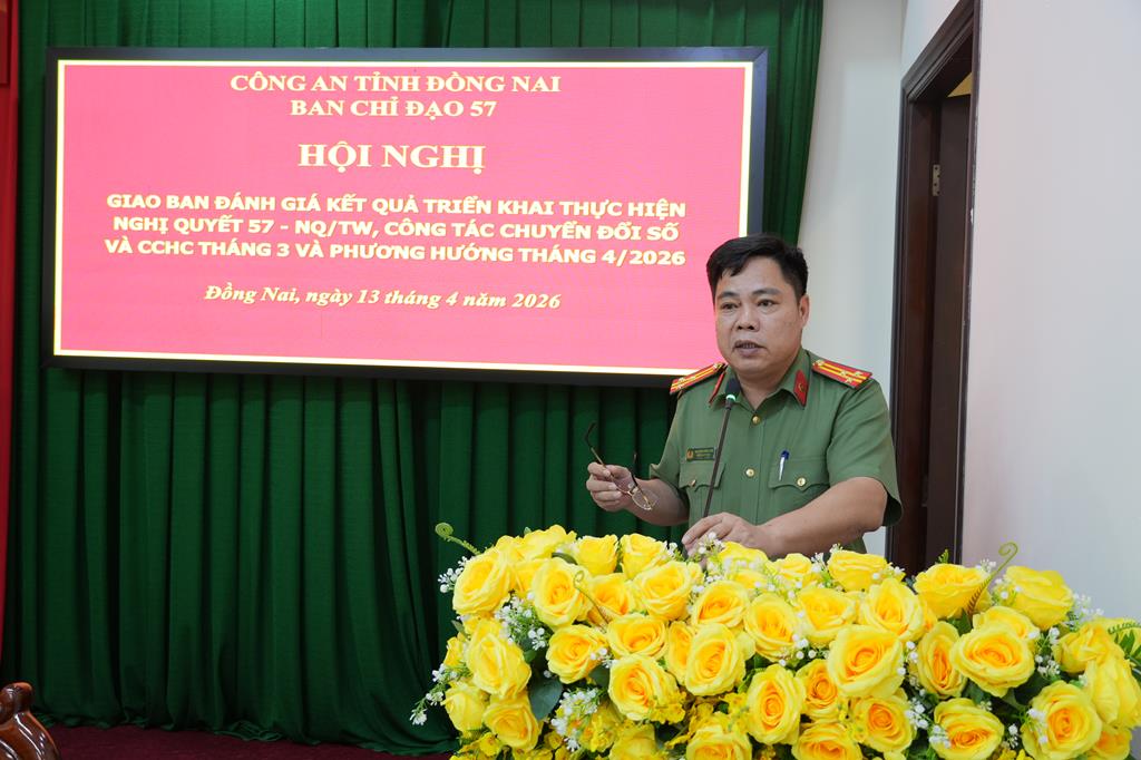 Phát biểu kết luận, đồng chí Phó Bí thư Đảng ủy - Phó Giám đốc Công an tỉnh yêu cầu trong tháng 4/2026, Công an các đơn vị, địa phương tiếp tục quán triệt, triển khai thực hiện nghiêm túc Nghị quyết số 57, xác định chuyển đổi số và CCHC là nhiệm vụ trọng tâm, xuyên suốt và xem đây là tiêu chí bắt buộc trong công tác thi đua, khen thưởng, xếp loại cán bộ và bình xét danh hiệu thi đua cuối năm. Tiếp tục rà soát đầy đủ các nhiệm vụ, chỉ tiêu trong thực hiện chuyển đổi số và Nghị quyết số 57 tại đơn vị để tổ chức triển khai hiệu quả, thực chất, tránh hình thức, bảo đảm rõ người, rõ việc, rõ tiến độ và rõ kết quả. Đồng chí đề nghị Công an các đơn vị, địa phương nghiên cứu xây dựng, triển khai các sáng kiến, mô hình, phần mềm ứng dụng công nghệ thông tin phục vụ công tác; tiếp tục thực hiện nghiêm túc việc tiếp nhận, chỉ đạo và xử lý văn bản trên môi trường điện tử.