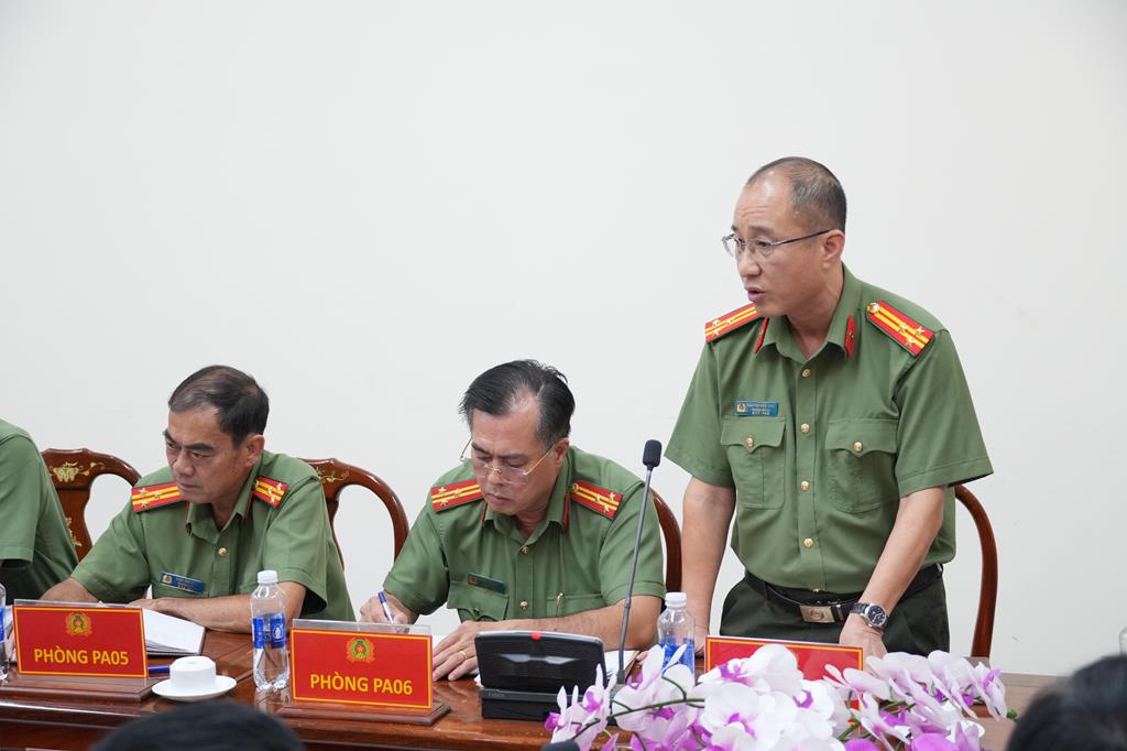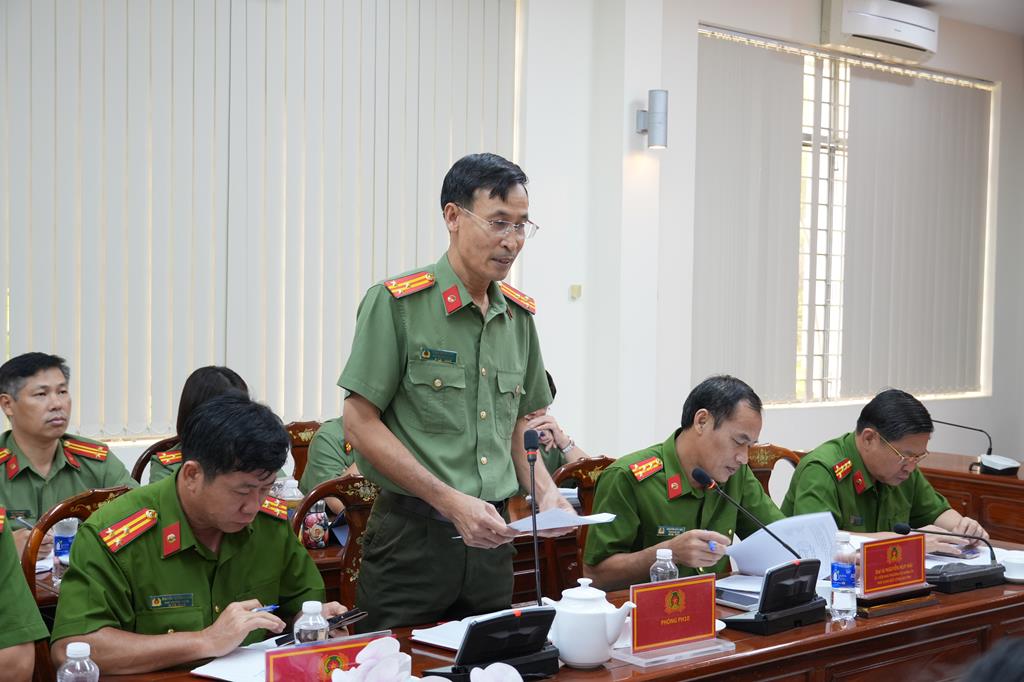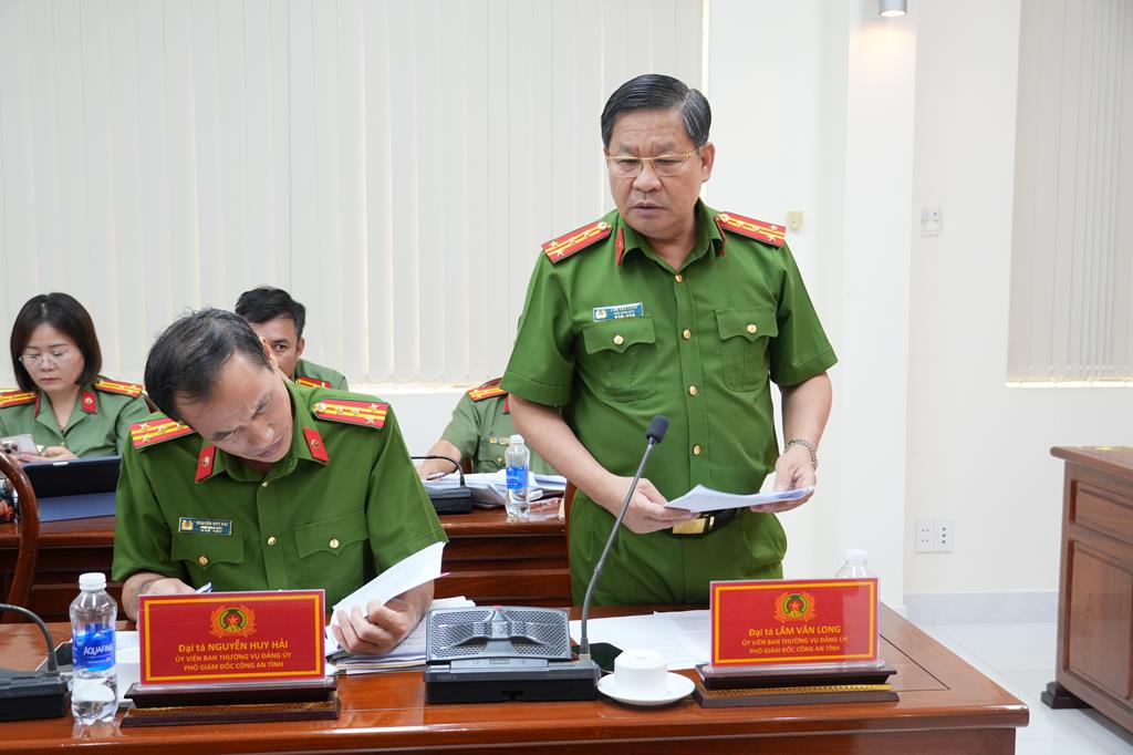 Đồng chí Đại tá Lâm Văn Long, Phó Giám đốc Công an tỉnh phát biểu tại Hội nghị