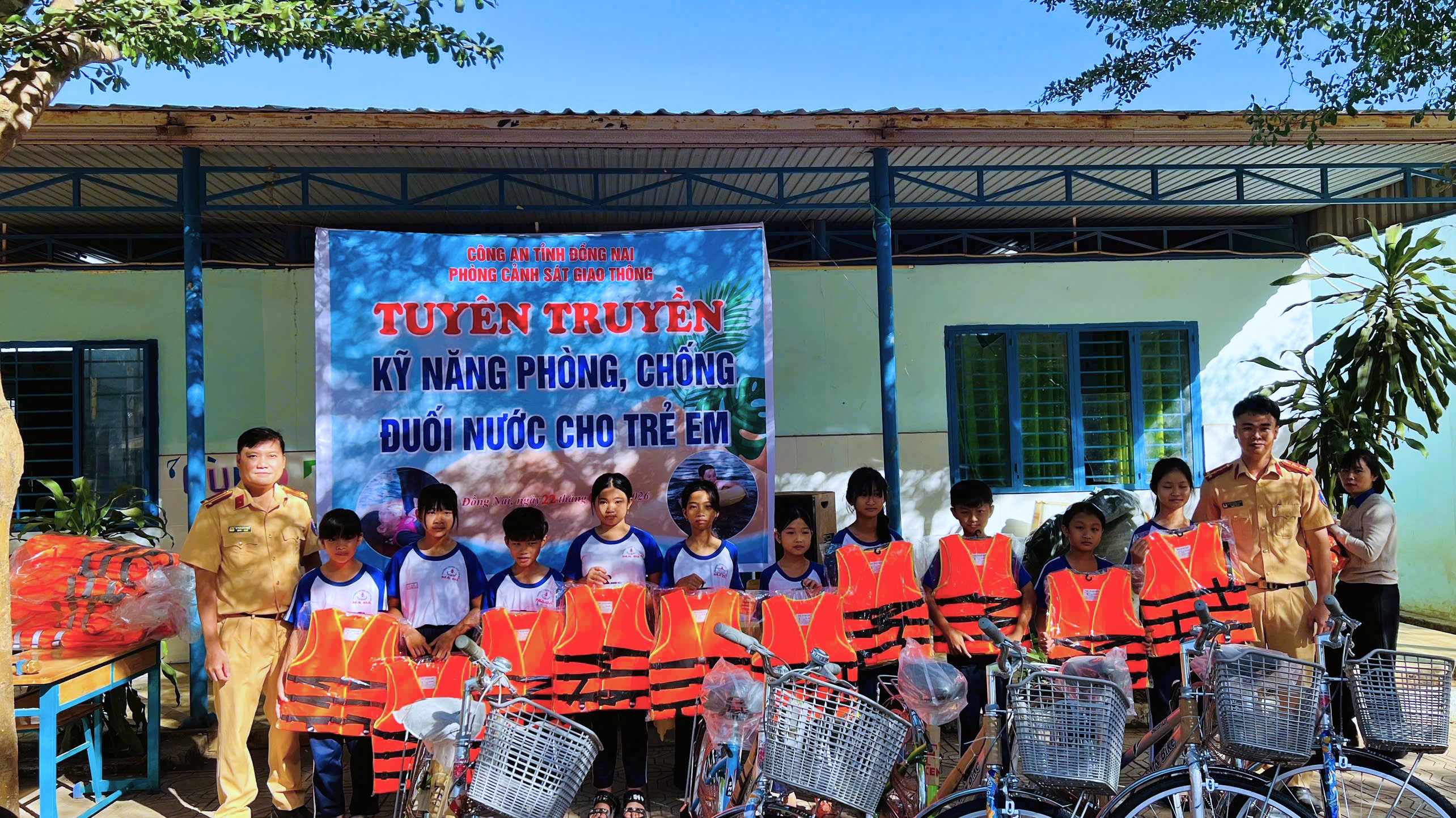 Cảnh sát đường thuỷ trang bị kỹ năng phòng, chống đuối nước cho học sinh vùng sông nước