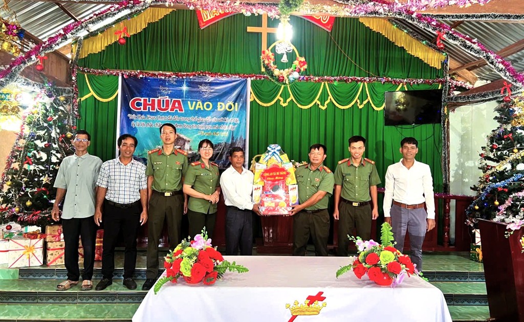 Công an xã Bù Đăng thăm, chúc mừng các cơ sở Công giáo, Tin Lành nhân dịp Lễ Giáng sinh 2025
