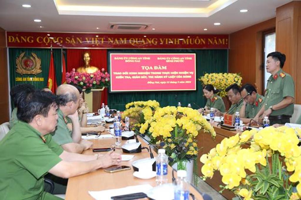 Phát biểu tại buổi tọa đàm, đồng chí Thượng tá Võ Đăng Khoa, Phó Chủ nhiệm Thường trực UBKT Đảng uỷ Công an tỉnh Đồng Nai và đồng chí Thượng tá Nguyễn Thị Xuân, Phó Chủ nhiệm Thường trực UBKT Đảng uỷ Công an tỉnh Bình Phước ghi nhận, đánh giá cao công tác tổ chức buổi tọa đàm của Đảng uỷ Công an tỉnh; nhất là công tác chuẩn bị, xây dựng báo cáo đề dẫn cũng như lựa chọn các vấn đề đưa ra thảo luận và các ý kiến tham luận đạt hiệu quả, chất lượng cao, phù hợp với tình hình thực tế và các quy định của Đảng. Đồng thời, các đồng chí nhấn mạnh, cấp uỷ, UBKT các cấp cần nhận thức đầy đủ về vị trí, vai trò, ý nghĩa của công tác kiểm tra, giám sát; xác định công tác kiểm tra, giám sát là phương thức lãnh đạo có hiệu quả của Đảng. Cấp ủy, UBKT các cấp cần tiếp tục làm tốt công tác quán triệt, triển khai, thực hiện có hiệu quả các văn bản chỉ đạo của Đảng và cấp uỷ cấp trên về công tác kiểm tra, giám sát, kỷ luật đảng; gắn chặt công tác này với công tác bồi dưỡng, giáo dục chính trị, tư tưởng, đạo đức, lối sống cho đội ngũ đảng viên, cán bộ chiến sỹ, góp phần xây dựng đội ngũ cán bộ, đảng viên trong sạch, vững mạnh, hoàn thành xuất sắc nhiệm vụ được giao.