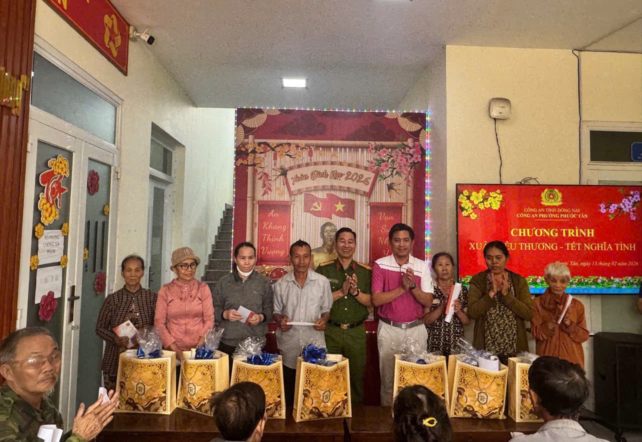Công an phường Phước Tân tổ chức tuyên truyền pháp luật và trao 100 phần quà “Xuân yêu thương - Tết nghĩa tình”