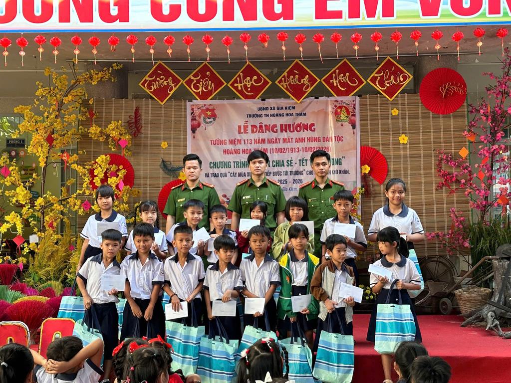 Chi đoàn Công an xã Gia Kiệm phối hợp chi đoàn Trường Tiểu học Hoàng Hoa Thám tổ chức chương trình “Xuân chia sẻ - Tết yêu thương”
