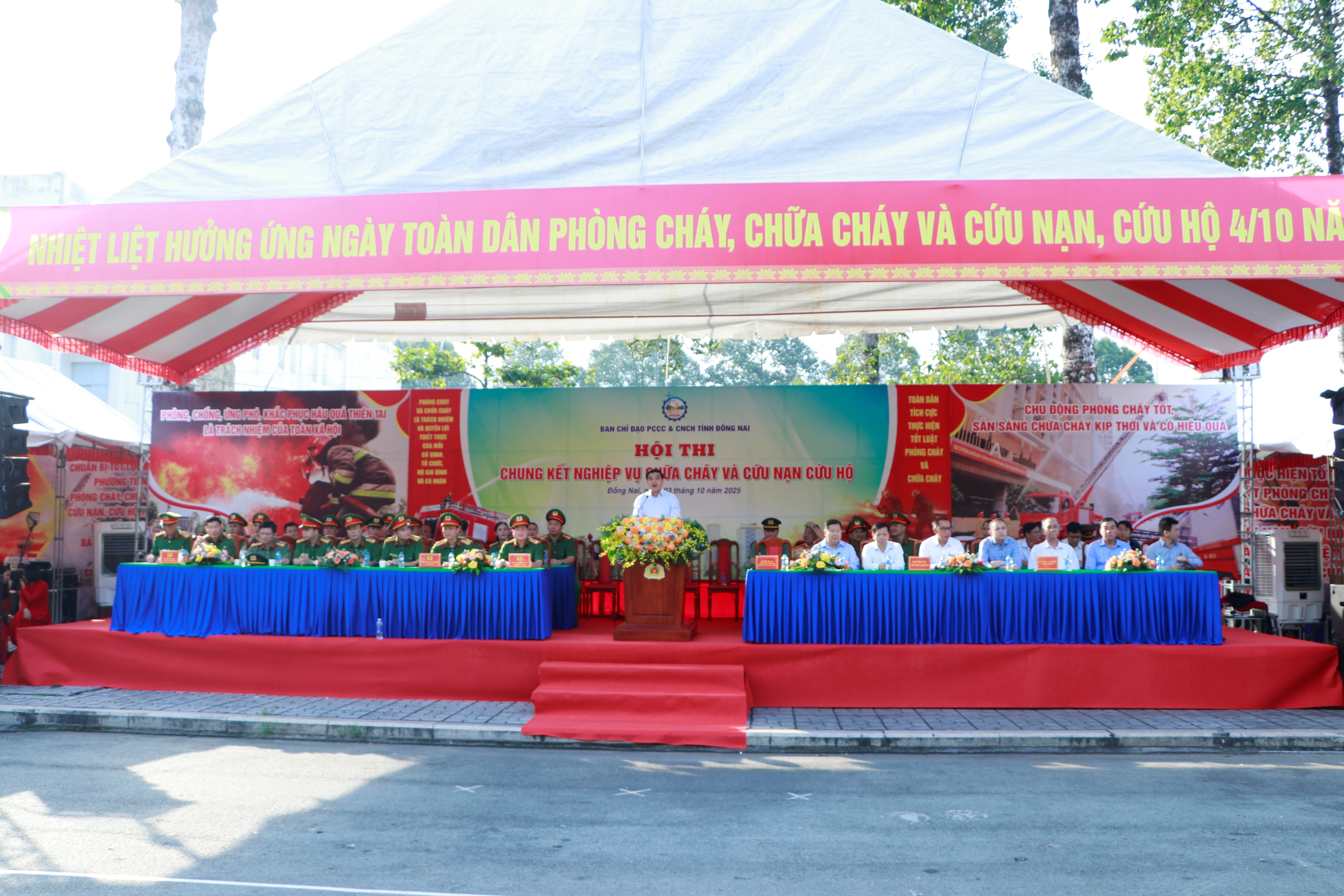 Trong không khí thi đua sôi nổi, lập nhiều thành tích chào mừng thành công Đại hội Đảng bộ tỉnh Đồng Nai lần thứ I, nhiệm kỳ 2025 - 2030 và Thực hiện Kế hoạch của Ban Chỉ đạo PCCC và CNCH tỉnh Đồng Nai về tổ chức các hoạt động hưởng ứng “Ngày toàn dân phòng cháy, chữa cháy và cứu nạn, cứu hộ 4/10”. Sáng ngày 3/10, tại Trung tâm xúc tiến Đầu tư, thương mại và Du lịch tỉnh đã diễn ra Hội thi chung kết nghiệp vụ chữa cháy và cứu nạn cứu hộ tỉnh Đồng Nai năm 2025. Đến dự có đồng chí Hồ Văn Hà, Phó Chủ tịch UBND tỉnh, Trưởng Ban Chỉ đạo PCCC và CNCH tỉnh, Đại tá Trần Anh Sơn, Phó Giám đốc Công an tỉnh, Trưởng Ban tổ chức Hội thi cùng đại diện Lãnh đạo các sở, ban, ngành; Lãnh đạo các phòng nghiệp vụ Công an tỉnh và 67 Đội tham dự hội thi.