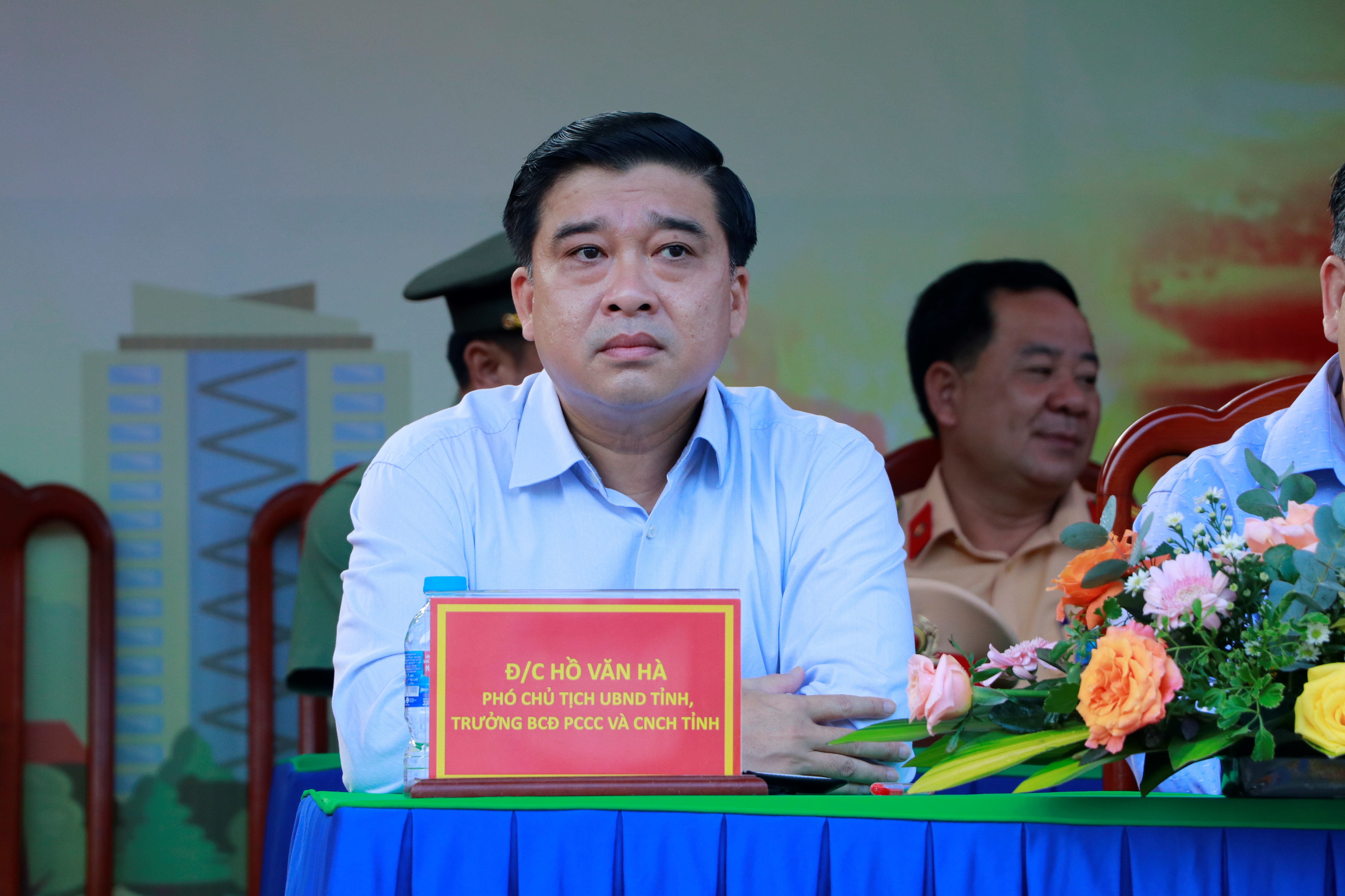 Phát biểu khai mạc tại Hội thi, đồng chí Hồ Văn Hà nhấn mạnh: Công tác phòng cháy, chữa cháy phải lấy phòng ngừa là chính, phòng là “xây”, chữa là “chống”, lấy phòng là “cơ bản - chiến lược - lâu dài”, làm tốt công tác phòng cháy để giảm công tác chữa cháy với phương châm: Từng nhà an toàn - Từng nhà máy, xí nghiệp, doanh nghiệp an toàn - Từng khu phố an toàn - Từng xã, phường an toàn. Xây dựng và nhân rộng mô hình “Tổ liên gia an toàn phòng cháy, chữa cháy”, “Điểm chữa cháy công cộng”, huy động tối đa các lực lượng tại chỗ và nhân dân tham gia chữa cháy, nhất là trong “thời điểm vàng” 5 phút kể từ khi vụ cháy xảy ra với phương châm: Lực lượng ở trong dân - Phương tiện ở trong dân - Hậu cần ở trong dân - Chỉ huy ở trong dân. Do đó việc tổ chức kiểm tra nghiệp vụ chữa cháy và cứu nạn, cứu hộ có tính chất hết sức quan trọng, nhằm đánh giá chất lượng, hiệu quả hoạt động của lực lượng dân phòng, lực lượng phòng cháy, chữa cháy cơ sở, chuyên ngành trên địa bàn toàn tỉnh. Kịp thời củng cố, kiện toàn tổ chức và hướng dẫn, bồi dưỡng kỹ năng sử dụng phương tiện, thiết bị phòng cháy, chữa cháy, các biện pháp xử lý tình huống cháy, nổ, nâng cao ý thức phòng ngừa, tinh thần sẵn sàng chiến đấu của lực lượng dân phòng, phòng cháy, chữa cháy cơ sở, chuyên ngành, đảm bảo phương châm “bốn tại chỗ”, kịp thời dập tắt đám cháy ngay từ khi mới phát sinh, hạn chế thấp nhất thiệt hại về người, tài sản.