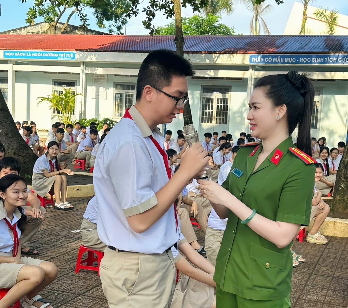Công an xã Hưng Thịnh tuyên truyền pháp luật về an toàn giao thông và phòng, chống bạo lực học đường tại Trường THCS Nguyễn Thượng Hiền