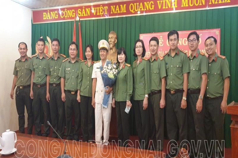 ảnh: Đ/c Trung tá Nguyễn Văn Thơ – Phó Đội trưởng Đội TMCS được điều động, bổ nhiệm chức vụ Trưởng Công an phường Tân Mai, TP Biên Hòa (đứng giữa).