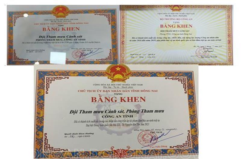 45 năm xây dựng và trưởng thành, các thế hệ cán bộ, chiến sỹ đội Tham mưu Cảnh sát đã viết nên những trang sử vẻ vang với bề dày thành tích đạt được, tập thể đội đã được tặng thưởng hàng chục bằng khen, giấy khen của các cấp, các ngành; nhiều năm liền được tặng thưởng cờ thi đua, đơn vị quyết thắng; hàng chục lượt cán bộ chiến sỹ được tặng bằng khen, giấy khen các cấp, các ngành, nhiều đồng chí đạt danh hiệu chiến sỹ thi đua cấp cơ sở. Chỉ tính riêng 10 năm từ 2010 đến 2020, tập thể đội đã có 10 năm đạt danh hiệu “đơn vị quyết thắng”; được tặng thưởng 01 bằng khen của Thủ tướng Chính phủ, 10 bằng khen của UBND tỉnh Đồng Nai, 03 bằng khen của Bộ Công an; 01 bằng khen của Chánh Văn phòng Bộ Công an, 01 giấy khen của Ban An toàn giao thông tỉnh, 15 giấy khen của Giám đốc Công an tỉnh; nhiều cán bộ chiến sĩ được tặng thưởng bằng khen, giấy khen các cấp... Ghi nhận những nỗ lực, đóng góp của tập thể và cán bộ chiến sỹ các thế hệ của đội, nhiều đồng chí trong Ban chỉ huy đội đã được sắp xếp, bổ nhiệm các vị trí lãnh đạo cao hơn, trong đó đã có những đồng chí giữ chức vụ Trưởng, Phó Trưởng phòng, nhiều lớp cán bộ, chiến sỹ được luân chuyển các vị trí công tác khác nhau, tiếp tục được quy hoạch, bổ nhiệm chỉ huy các đội nghiệp vụ trong Công an tỉnh...; Dù ở vị trí công tác nào các CBCS đơn vị cũng phát huy được năng lực công tác, truyền thống vẻ vang của người chiến sỹ Tham mưu Cảnh sát, tiếp tục có nhiều đóng góp cho các đơn vị mới, chất lượng công tác của các cán bộ chiến sỹ trong đội được nhiều cấp lãnh đạo, chỉ huy các đơn vị nghiệp vụ, Công an các huyện, thành phố đánh giá cao.