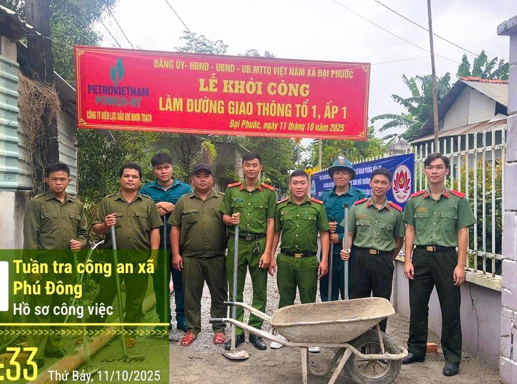 Trong không khí thi đua sôi nổi, lực lượng Công an xã phối hợp với các Ban, Ngành, Đoàn thể và Nhân dân tổ chức nhiều hoạt động thiết thực, mang đậm tinh thần “Dân vận khéo”. Nổi bật là việc trao tặng 10 phần quà (mỗi phần trị giá 500.000 đồng) cho các hộ gia đình khó khăn; tham gia thi công tuyến đường giao thông dài 120 mét, rộng 3 mét; tổng vệ sinh và chỉnh trang Công viên khu Tái định cư Phước Khánh; phát quang, cắt tỉa cây xanh hai bên đường, góp phần cải thiện cảnh quan, môi trường sống cho người dân.