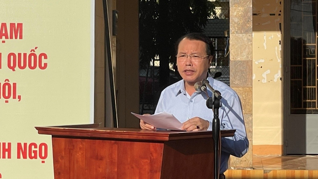 Đồng chí Ngô Hồng Khang, Phó Bí thư Đảng ủy - Chủ tịch UBND phường phát biểu chỉ đạo tại Lễ ra quân.