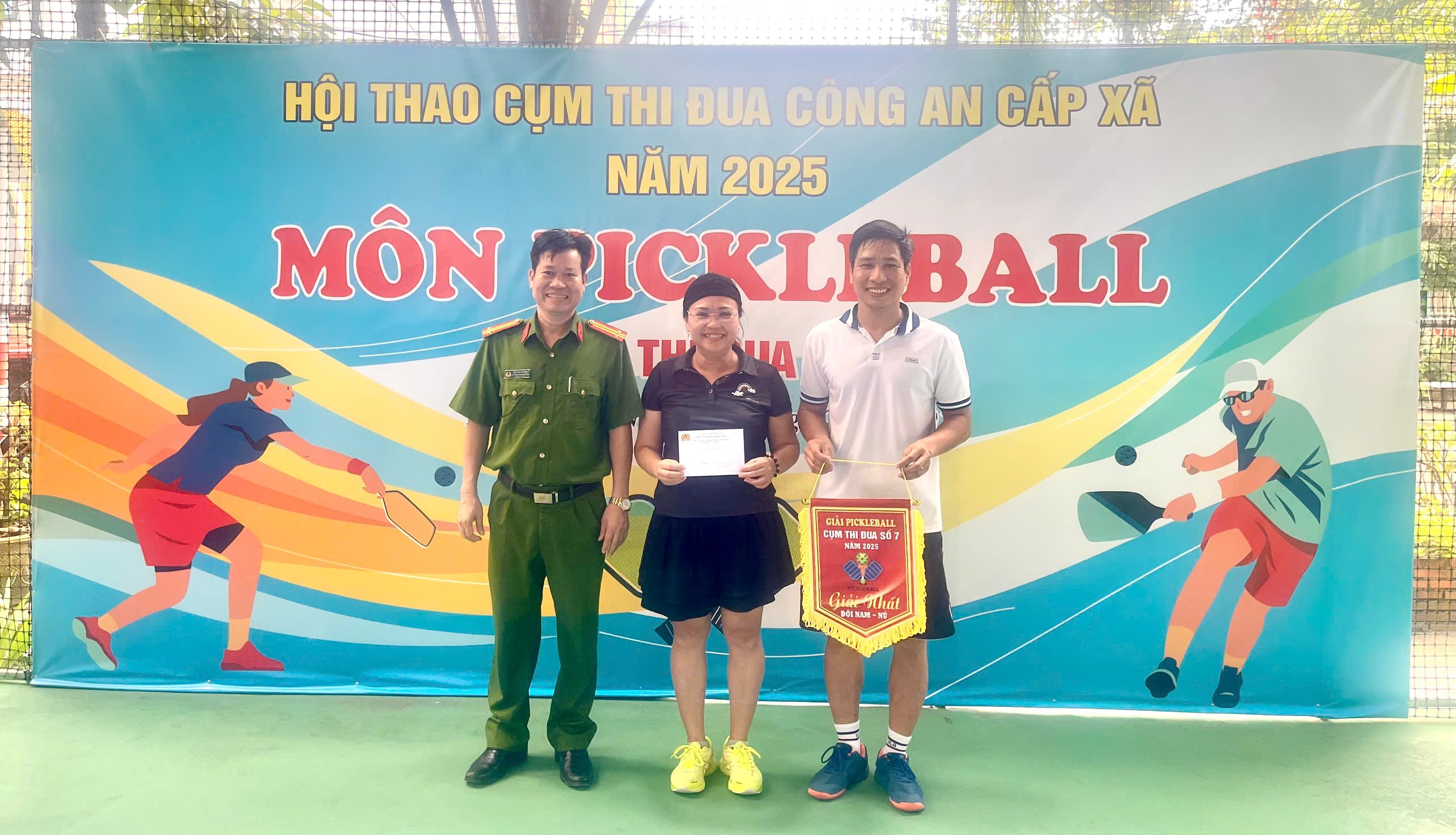 Sau nửa ngày thi đấu sôi nổi, quyết liệt trên tinh thần đoàn kết và thể thao cao thượng, Giải Pickleball Cụm thi đua số 7 Công an xã - Công an tỉnh Đồng Nai đã thành công tốt đẹp. Ban Tổ chức đã trao 01 giải Nhất; 01 giải Nhì; 02 giải Ba và một số giải phụ (phong cách, vận động viên xuất sắc,…).