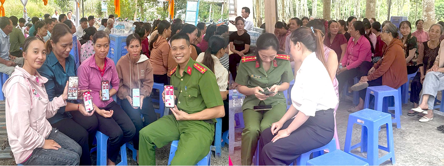 Lực lượng Công an xã Minh Đức tích cực tuyên truyền, hướng dẫn người dân đăng ký, kích hoạt và sử dụng ứng dụng VNeTraffic