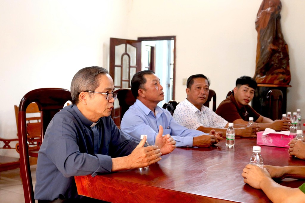 Công an phương hỏi thăm tặng quà Linh mục Nguyễn Văn Thân – Chánh xứ giáo xứ Tân Châu
