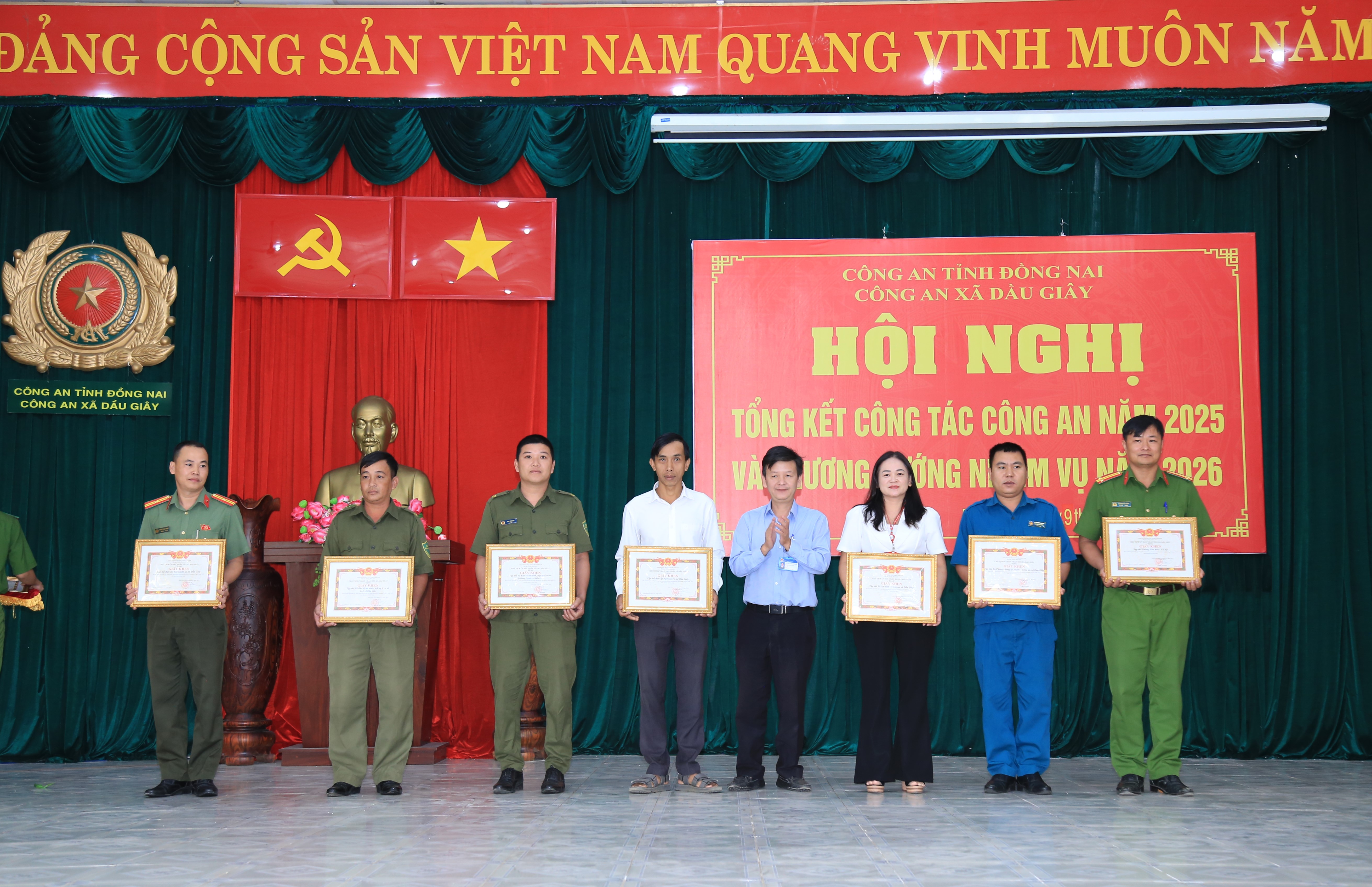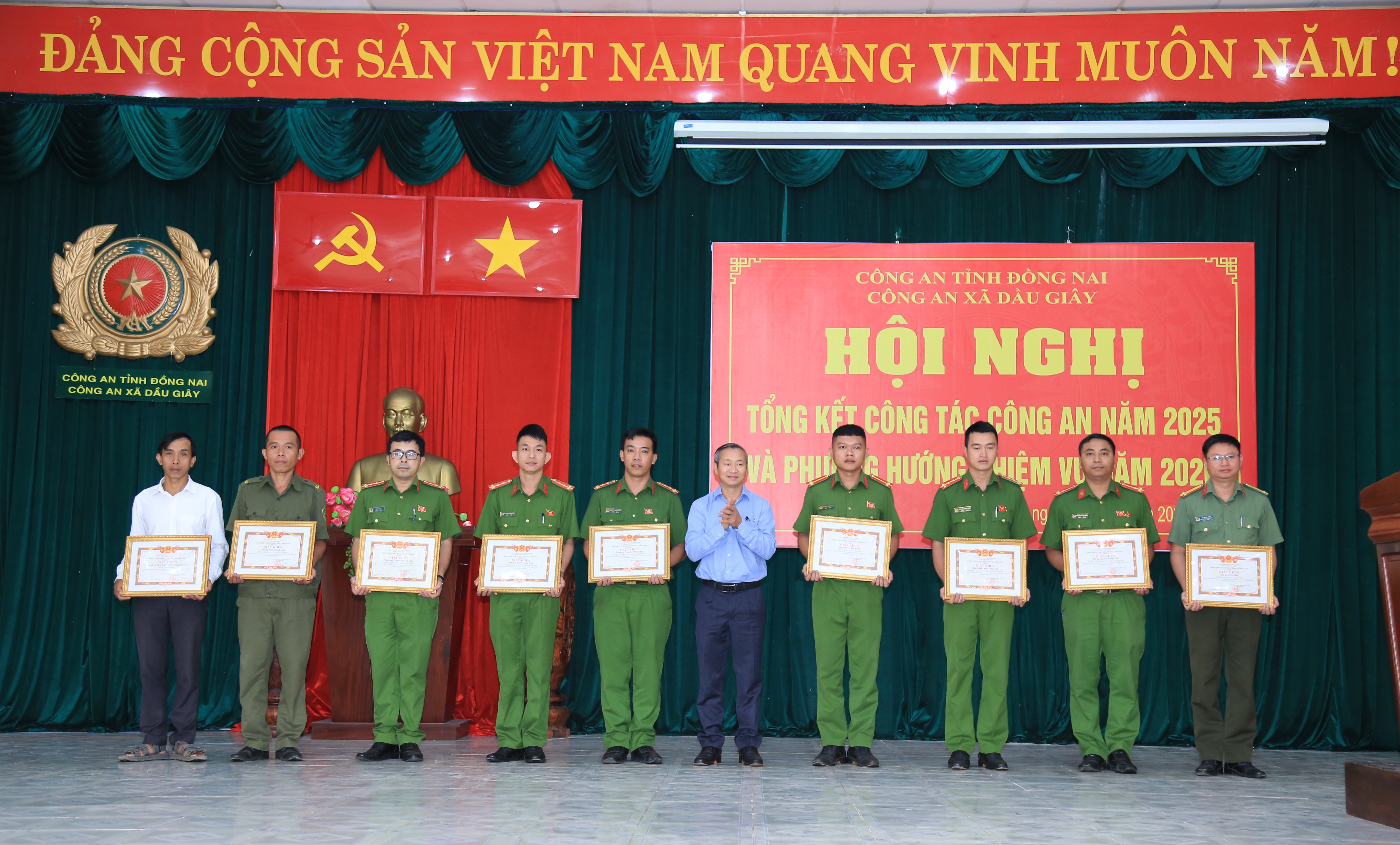 Năm 2025, Công an xã Dầu Giây đã chủ động tham mưu cấp ủy, chính quyền địa phương triển khai đồng bộ các biện pháp bảo đảm an ninh, trật tự (ANTT). Trong năm, đơn vị đã tổ chức trên 1200 lượt tuần tra; bắt, xử lý 10 vụ - 14 đối tượng phạm pháp hình sự, 20 vụ-34 đối tượng phạm pháp về ma túy; tình hình an ninh được kiềm chế, không để xảy ra vụ việc phức tạp, kéo dài.