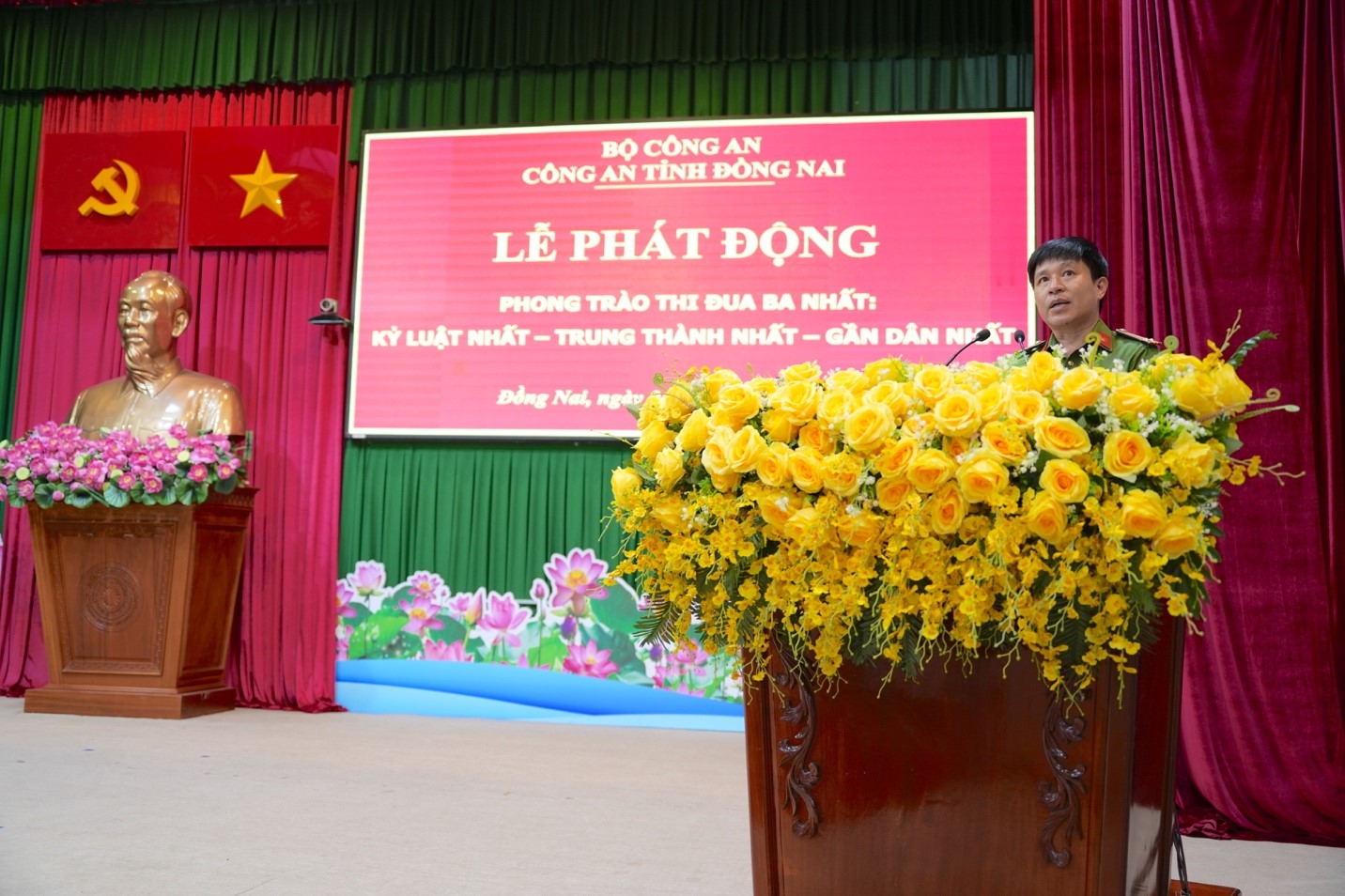 Phát biểu phát động phong trào thi đua, Đại tá Trần Anh Sơn, Phó Giám đốc Công an tỉnh nhấn mạnh, phong trào thi đua “Ba nhất: Kỷ luật nhất – Trung thành nhất – Gần dân nhất” là nhiệm vụ chính trị trọng tâm và là thước đo đánh giá phẩm chất, năng lực, uy tín của mỗi tập thể, cá nhân trong lực lượng Công an Đồng Nai. Đây không chỉ là phong trào thi đua mà còn quá là quá trình rèn luyện, tự soi, tự sửa, tự nâng mình lên để xứng đáng với niềm tin yêu của Đảng, Nhà nước và Nhân dân. Theo đó, nội dung, chỉ tiêu thi đua của phong trào “Ba nhất” bao gồm: Thi đua “Kỷ luật nhất” - Xây dựng lực lượng vững mạnh, kỷ cương, gương mẫu; Thi đua “Trung thành nhất” - Kiên định lập trường, tuyệt đối trung thành với Đảng, Tổ quốc và Nhân dân; Thi đua “Gần dân nhất” - Lấy sự hài lòng của Nhân dân làm thước đo. Phong trào thi đua “Ba nhất” được thực hiện trong giai đoạn 2025 - 2030.
