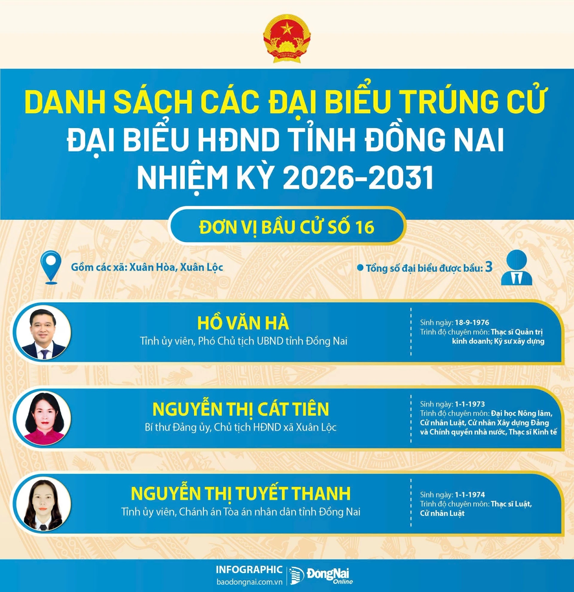 Trân trọng giới thiệu danh sách những người trúng cử đại biểu HĐND tỉnh khóa XI, nhiệm kỳ 2026-2031.