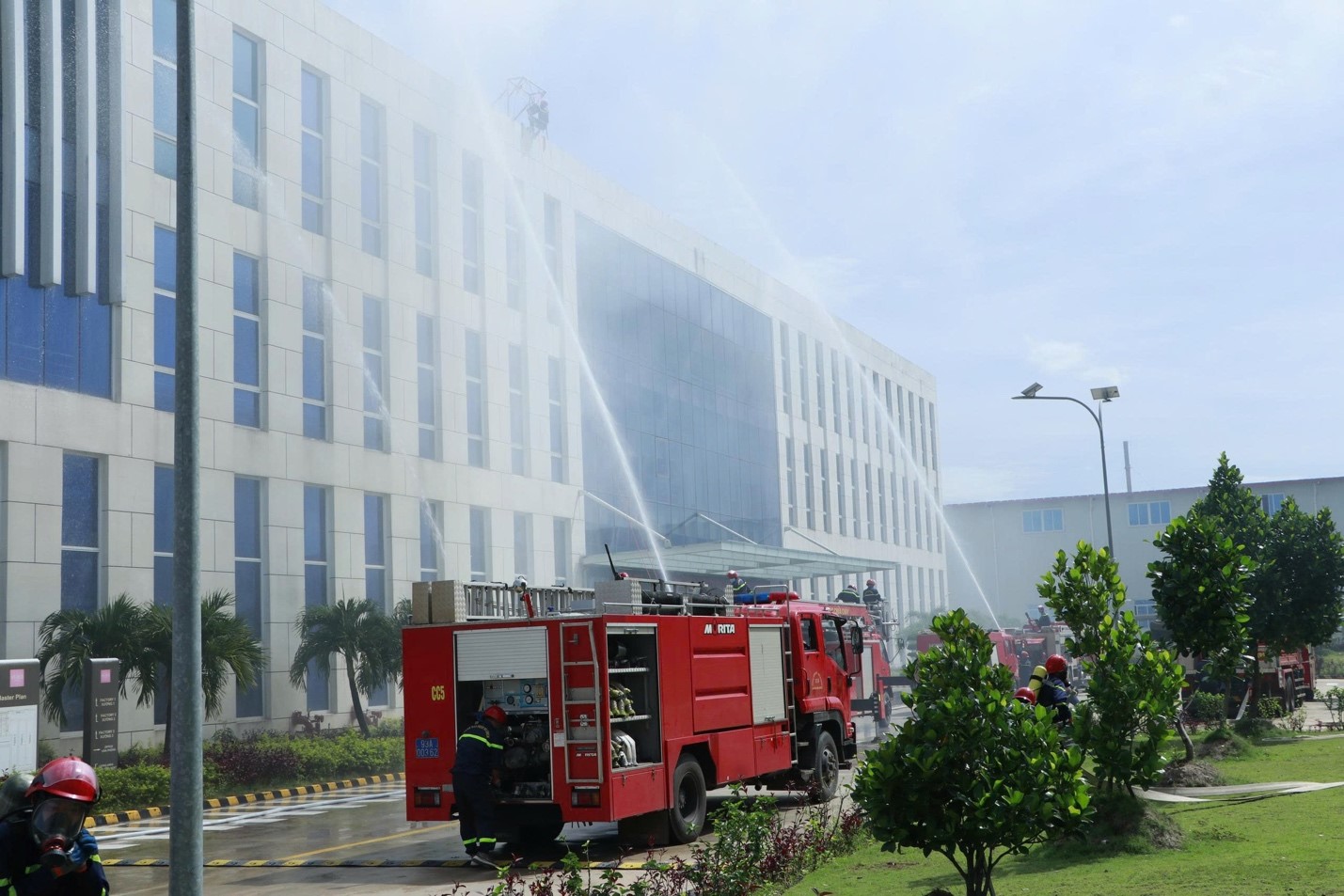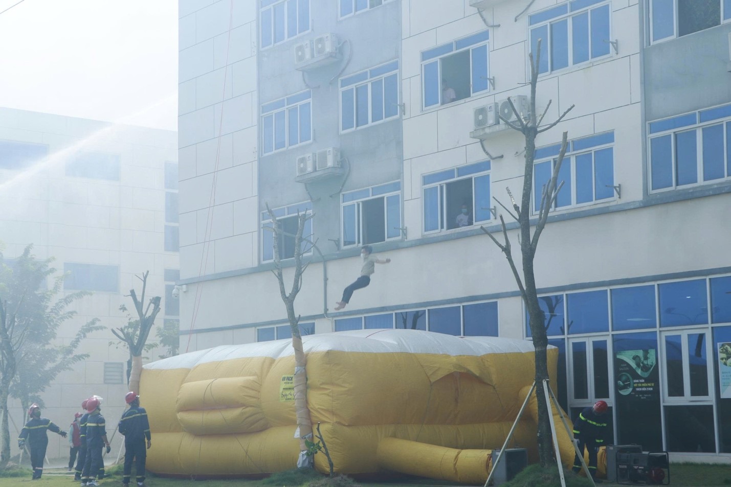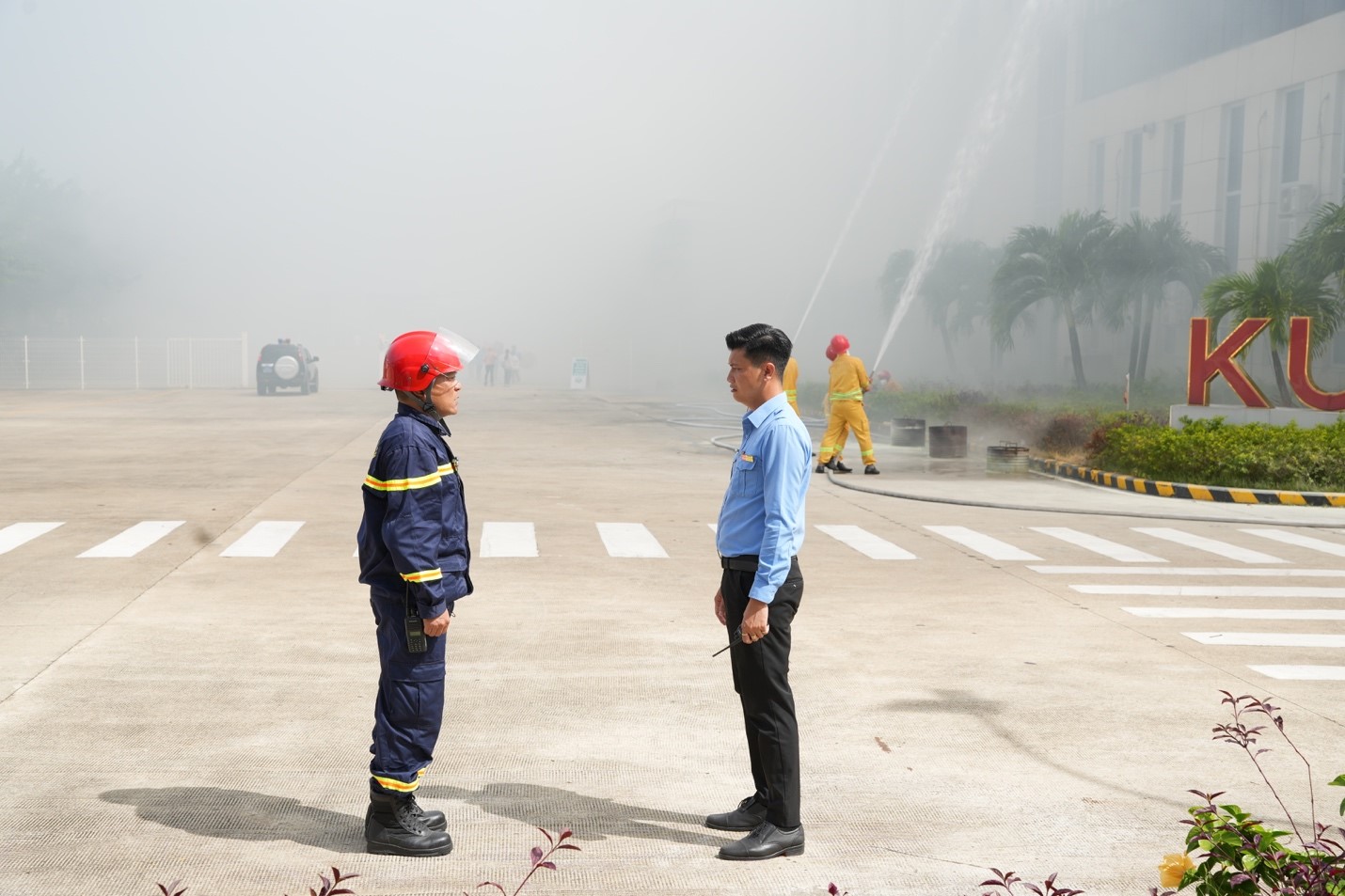 Tình huống giả định khói bốc lên từ toà nhà chính của Công ty - nơi có hàng trăm người lao động đang làm việc