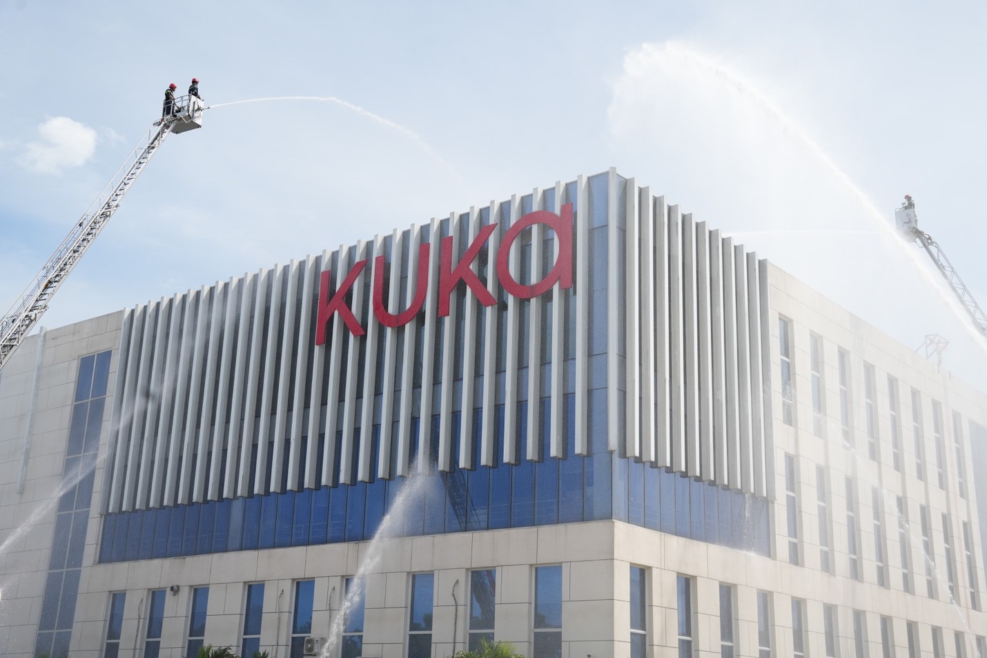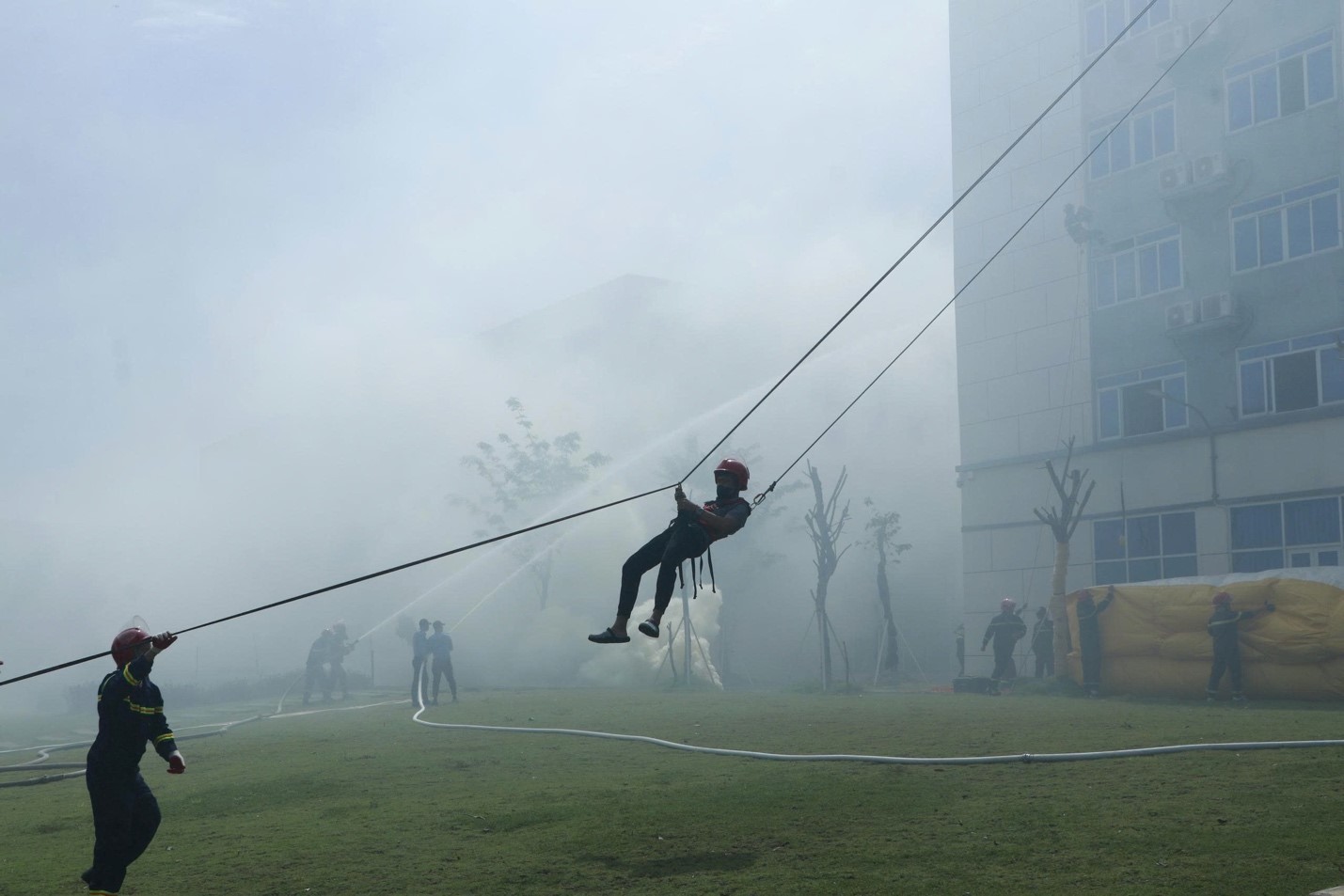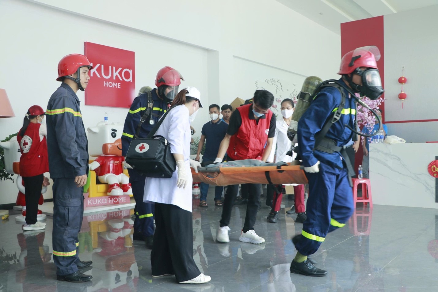 Tình huống giả định khói bốc lên từ toà nhà chính của Công ty - nơi có hàng trăm người lao động đang làm việc