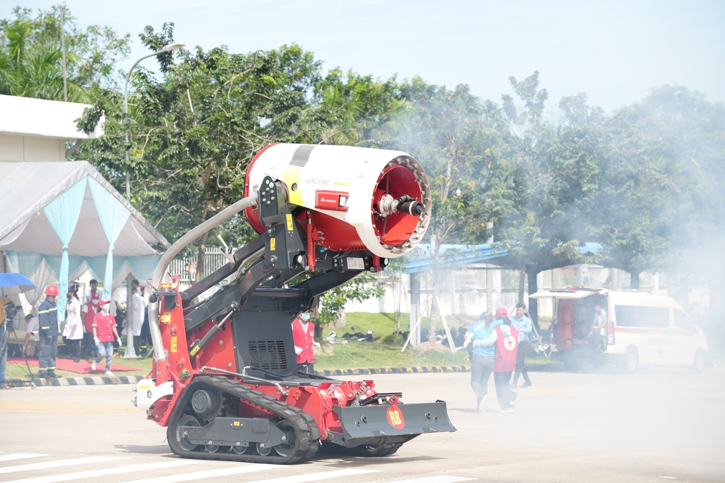 Robot chữa cháy – một trong những phương tiện chữa cháy hiện đại được huy động tham gia công tác diễn tập