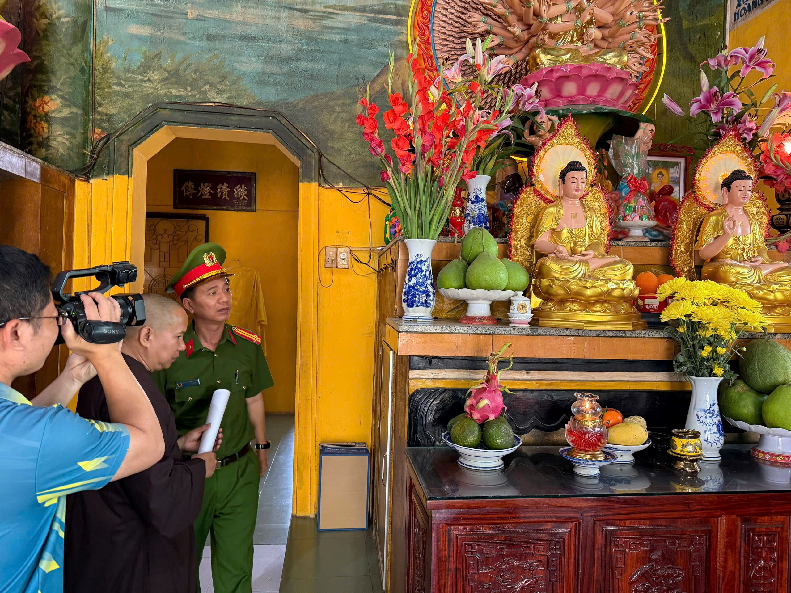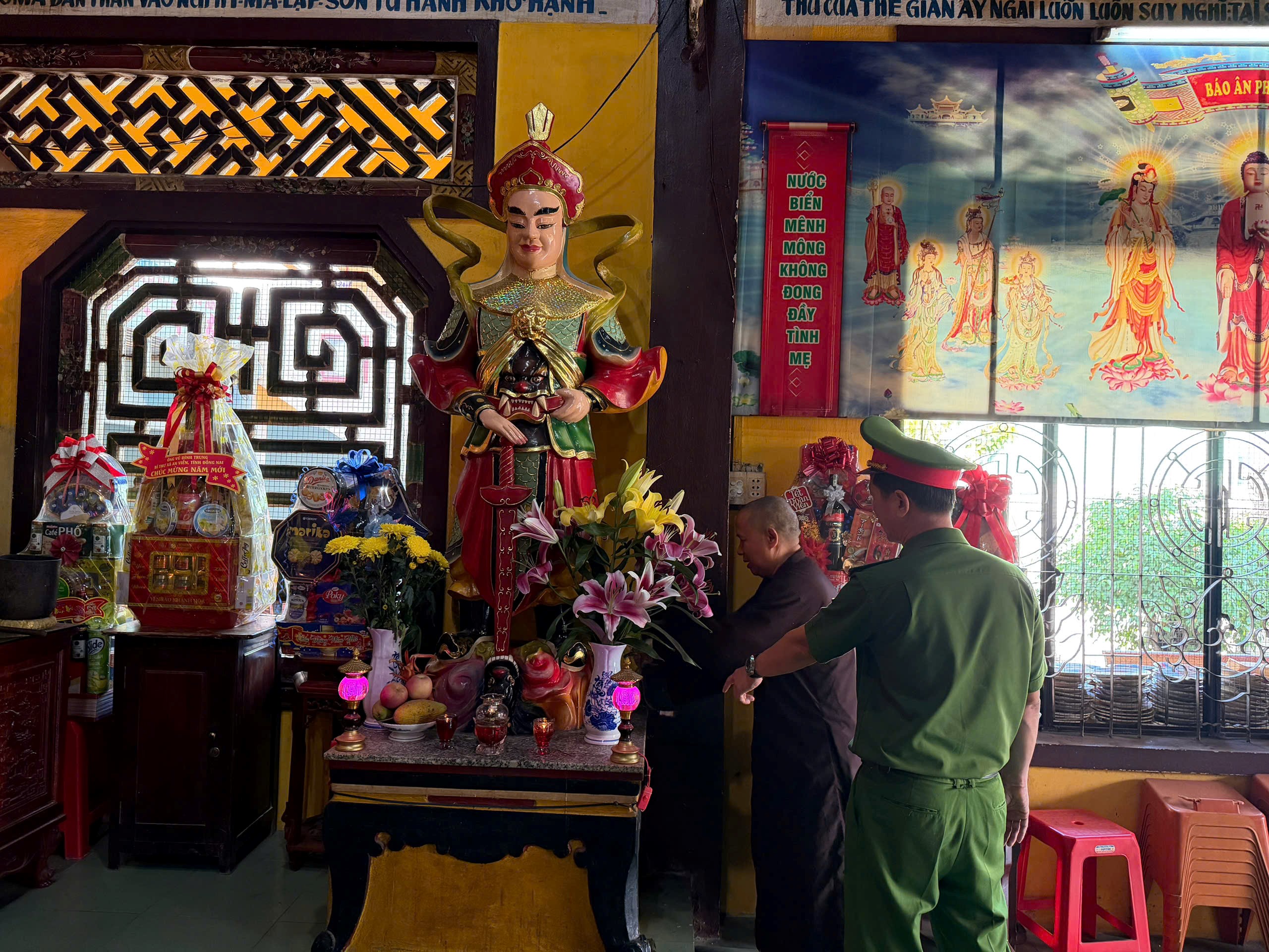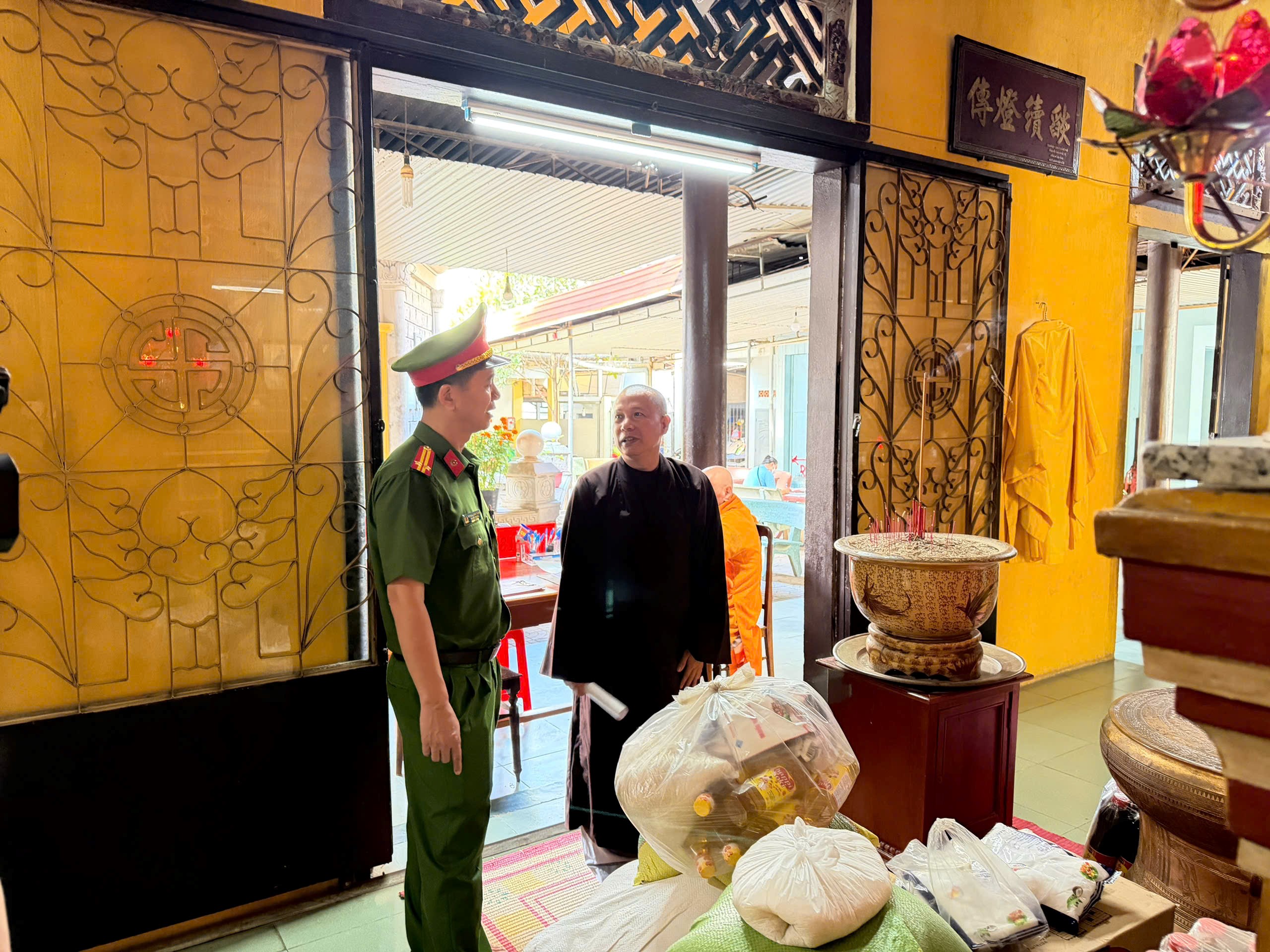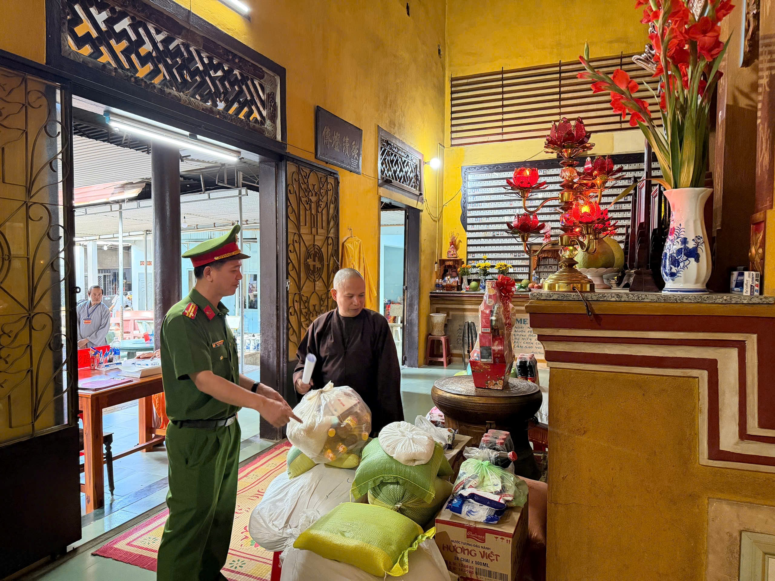 Rằm tháng Giêng hằng năm là thời điểm các cơ sở tôn giáo thu hút đông đảo phật tử và người dân đến dâng hương, lễ bái. Lượng người tập trung đông, hoạt động thắp nhang, đèn cầy, đốt vàng mã diễn ra thường xuyên tiềm ẩn nhiều nguy cơ phát sinh cháy, nổ nếu không được quản lý chặt chẽ. Nhận thức rõ điều đó, lực lượng Cảnh sát PCCC&CNCH đã chủ động bám sát địa bàn, phối hợp chính quyền cơ sở triển khai kiểm tra thực tế, kết hợp tuyên truyền trực tiếp đến trụ trì, ban quản lý và người phục vụ tại các cơ sở.