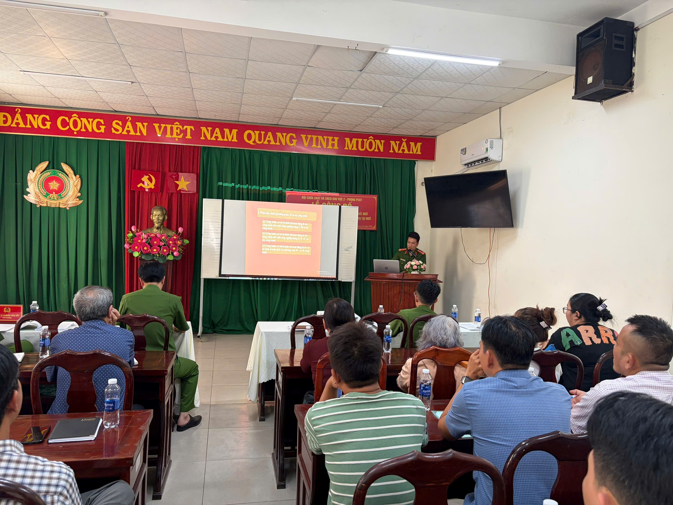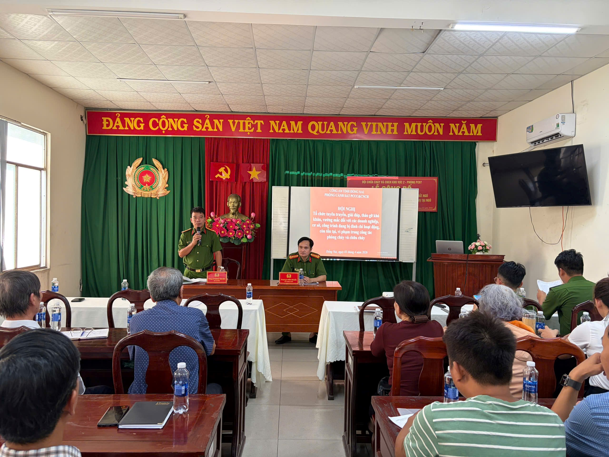 Đến dự và chỉ đạo buổi làm việc có đồng chí Thượng tá Trần Văn Bắc – Phó Trưởng phòng Cảnh sát PCCC&CNCH Công an tỉnh Đồng Nai.