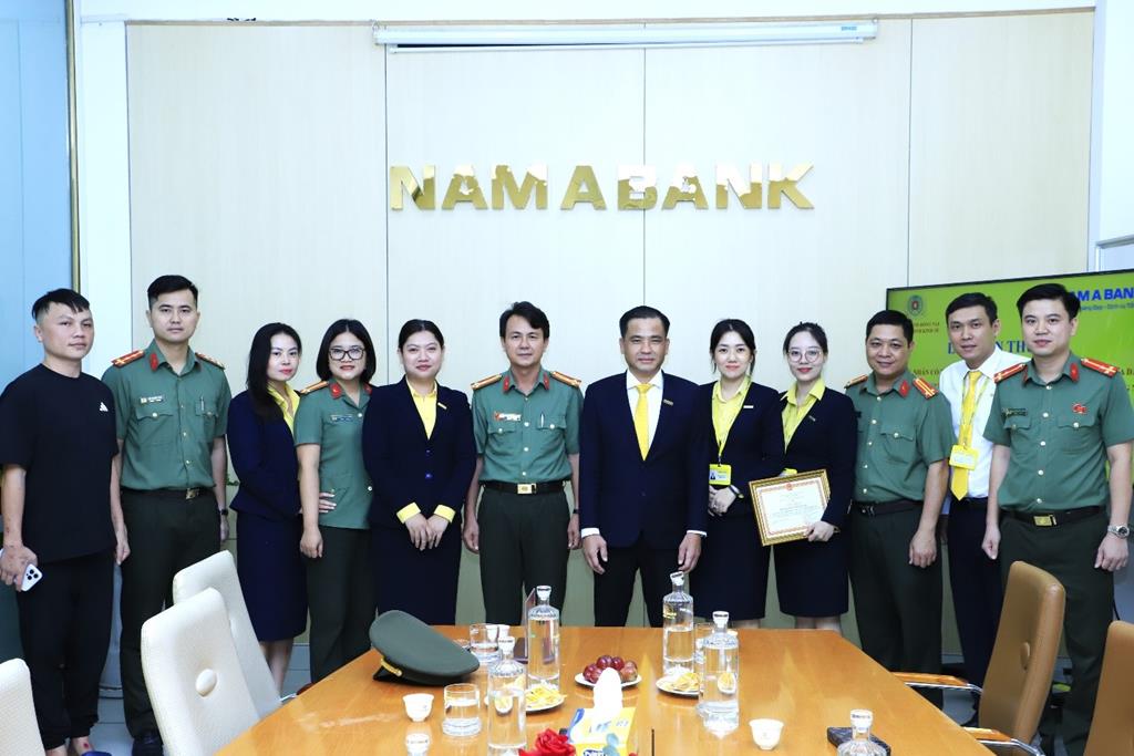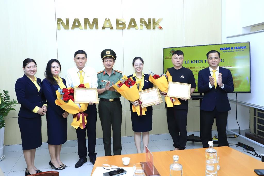 Lãnh đạo, CBCS Phòng An ninh kinh tế cùng Ban giám đốc Ngân hàng Nam Á - Chi nhánh Đồng Nai chúc mừng các cá nhân được khen thưởng