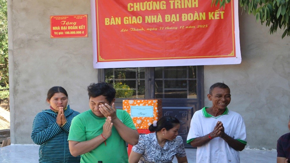 Gia đình ông Lâm Pâu xúc động khi được trao tặng Nhà Đại đoàn kết.