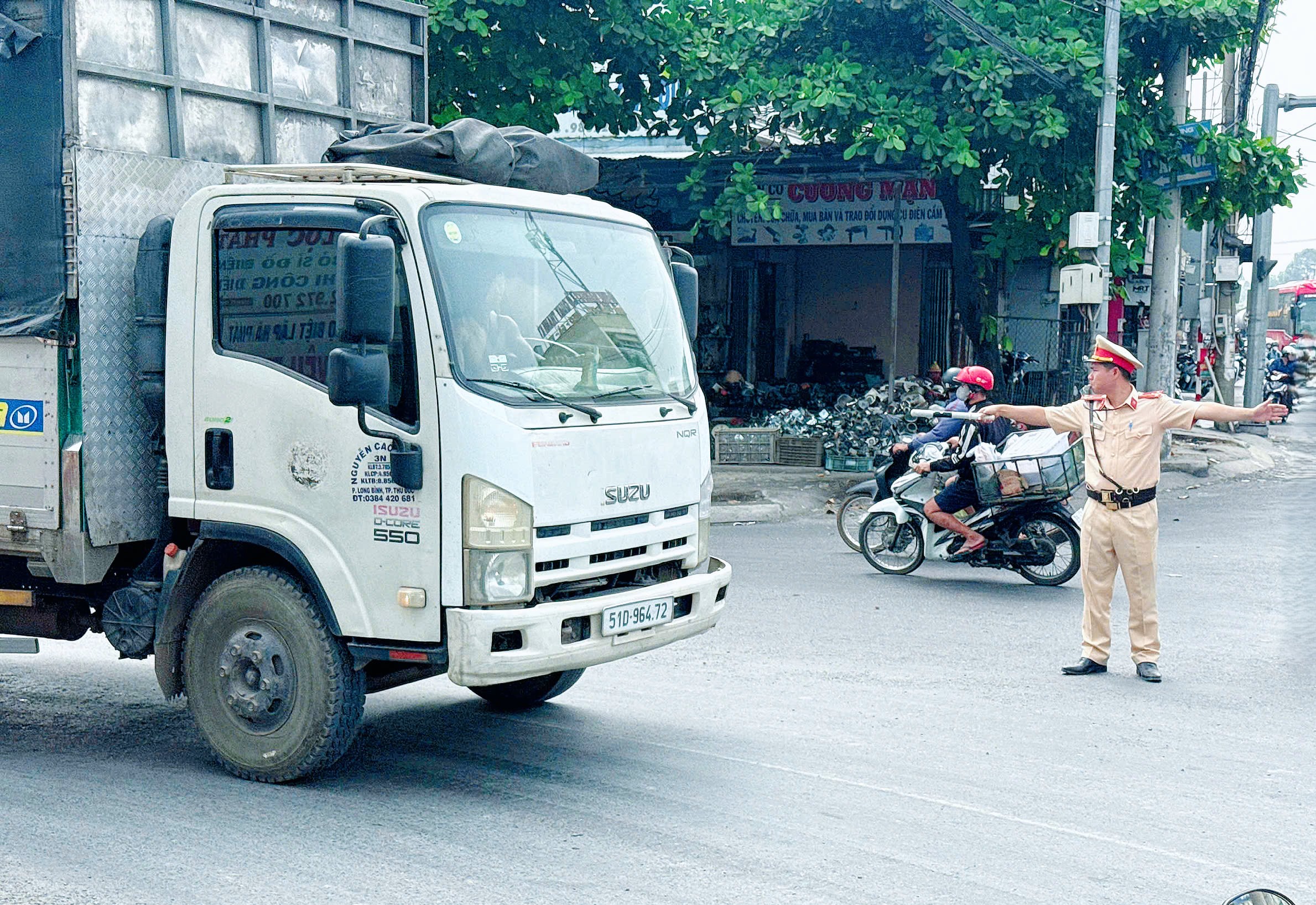 Điều tiết, phân luồng giao thông trên tuyến QL1A (đoạn ngã ba Phát triển, Phường Long Bình)