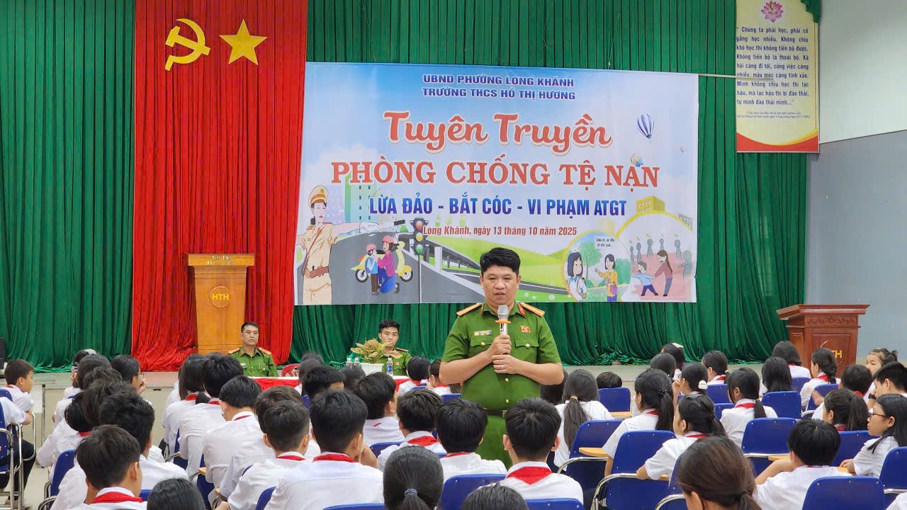 Chiều 13/10, Công an phường Long Khánh (tỉnh Đồng Nai) phối hợp với Trường THCS Hồ Thị Hương tổ chức buổi tuyên truyền, phổ biến kiến thức pháp luật chuyên sâu cho học sinh toàn trường.