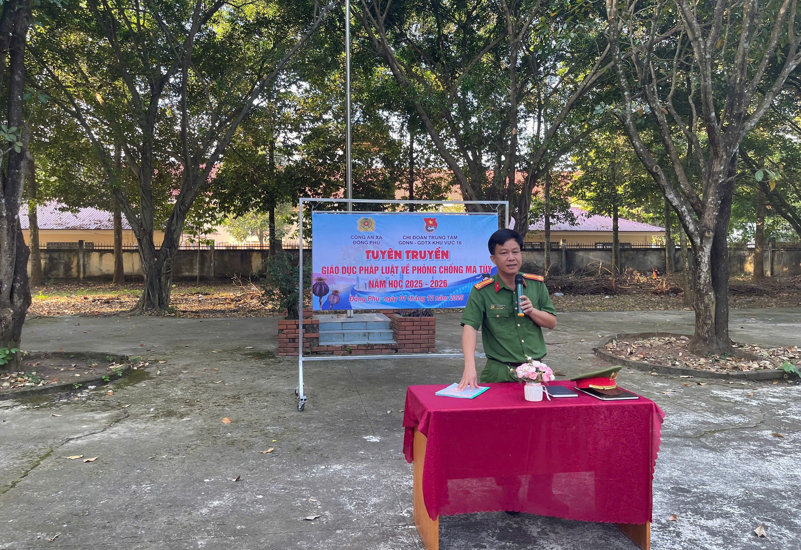 Ngày 01/12/2025, Công an xã Đồng Phú đã tổ chức buổi tuyên truyền phòng, chống ma túy tại Trung tâm Giáo dục nghề nghiệp và Giáo dục thường xuyên (GDNN & GDTX) Khu vực 16 với sự tham gia của hơn 300 cán bộ, giáo viên và học sinh.