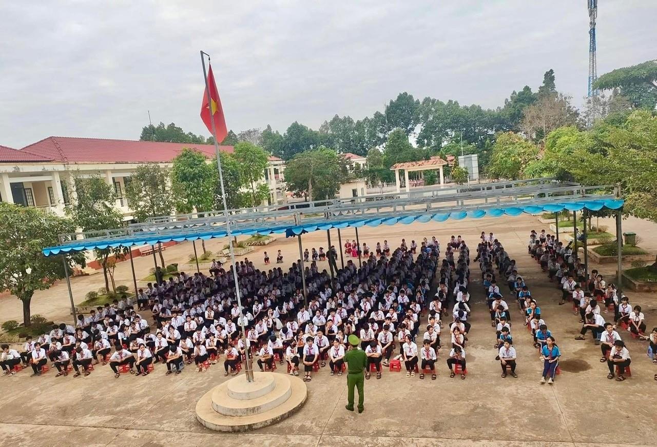 Tại buổi tuyên truyền, Công an xã đã phân tích rõ các hành vi bạo lực học đường, nguyên nhân, hậu quả và trách nhiệm pháp lý liên quan; Cảnh báo những thủ đoạn lôi kéo, rủ rê học sinh sử dụng ma túy, đặc biệt là ma túy trá hình dưới dạng thuốc lá điện tử, bánh kẹo, nước uống; Hướng dẫn học sinh kỹ năng phòng tránh, cách xử lý khi bị đe dọa, bắt nạt hoặc phát hiện hành vi vi phạm.