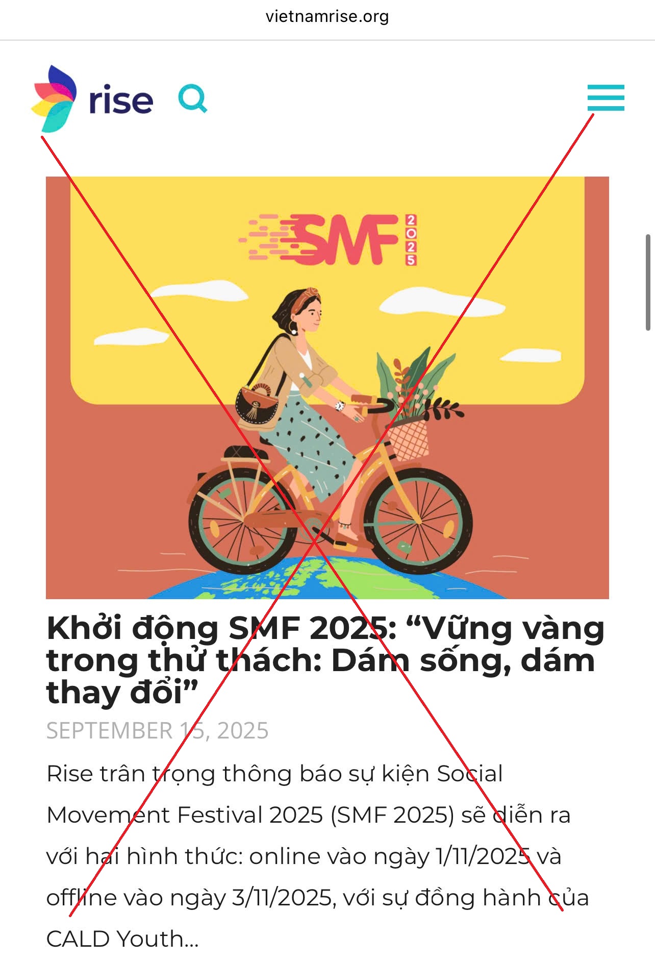 Theo cảnh báo của Bộ Công an và nhiều cơ quan Công an địa phương, tổ chức RISE (hay còn gọi là VietnamRise) thực chất là một chi nhánh hoạt động trá hình của tổ chức khủng bố Việt Tân, được điều hành bởi các đối tượng phản động lưu vong, từng tham gia nhiều hoạt động tuyên truyền chống Nhà nước Việt Nam, như: Angelina Trang Huỳnh, Trinity Phạm (Phạm Hồng Thuận), Nguyễn Quốc Trinh, Nguyễn Khoa Diệu Quyên, Nguyễn Mạnh Hùng. Dưới danh nghĩa “xây dựng cộng đồng”, “phát triển xã hội dân sự”, “thúc đẩy năng lực lãnh đạo trẻ”, RISE lợi dụng danh nghĩa xã hội dân sự để tổ chức các chương trình như SMF 2024, SMF 2025, Fellowship RISE để mời gọi thanh niên trong nước tham gia “đào tạo kỹ năng”, “xây dựng dự án cộng đồng”. Nhưng thực chất, đây là quy trình lôi kéo, tuyển chọn, huấn luyện và móc nối lực lượng thanh niên, trí thức trẻ trong nước nhằm hình thành các hạt nhân chống đối, tiến tới kích động “cách mạng màu”, “cách mạng đường phố” theo mô hình đã diễn ra ở một số quốc gia Đông Âu, Trung Đông và gần đây nhất là tại Châu Á, như: Myanmar (2021), Sri Lanka (2022), Bangladesh (2024), Nepal (2025), Indonesia (2025).