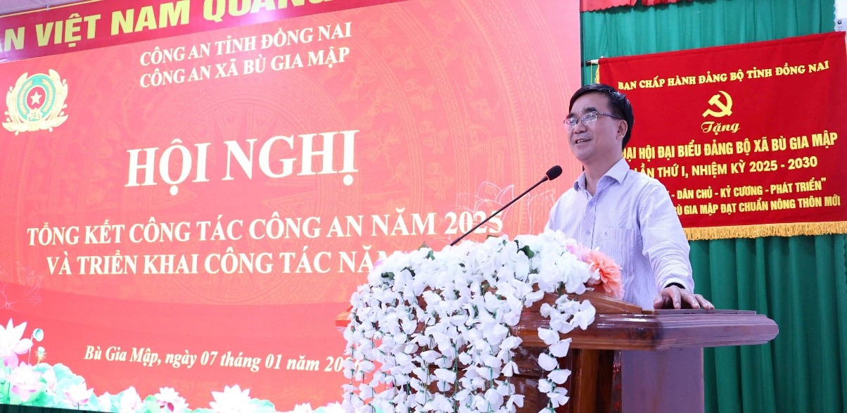 Phát biểu tại Hội nghị, đồng chí Phó Giám đốc Công an tỉnh và đồng chí Chủ tịch UBND xã ghi nhận, chúc mừng kết quả Công an xã Bù Gia Mập đã đạt được trong năm 2025. Các đồng chí chỉ đạo, ngay sau Hội nghị, chương trình công tác năm 2026 của Công an xã phải được triển khai thực hiện ngay, trên tinh thần phải rõ người, rõ việc, rõ tiến độ, rõ thời gian hoàn thành. Tập trung triển khai làm tốt công tác bảo đảm ANTT, phục vụ phát triển kinh tế - xã hội của địa phương; đẩy mạnh đấu tranh phòng, chống các loại tội phạm, nhất là tội phạm ma túy, hình sự, tội phạm sử dụng công nghệ cao; triển khai xây dựng xã không ma túy. Trước mắt, Công an xã phải thực hiện tốt cao điểm tấn công trấn áp tội phạm, bảo đảm an ninh trật tự, bảo vệ Đại hội Đảng toàn quốc lần thứ 14, bầu cử đại biểu Quốc hội khóa 16 và đại biểu HĐND các cấp, nhiệm kỳ 2026-2031 với tinh thần chủ động, từ sớm, từ xa, từ cơ sở, không để xảy ra đột xuất, bất ngờ trong mọi tình huống.