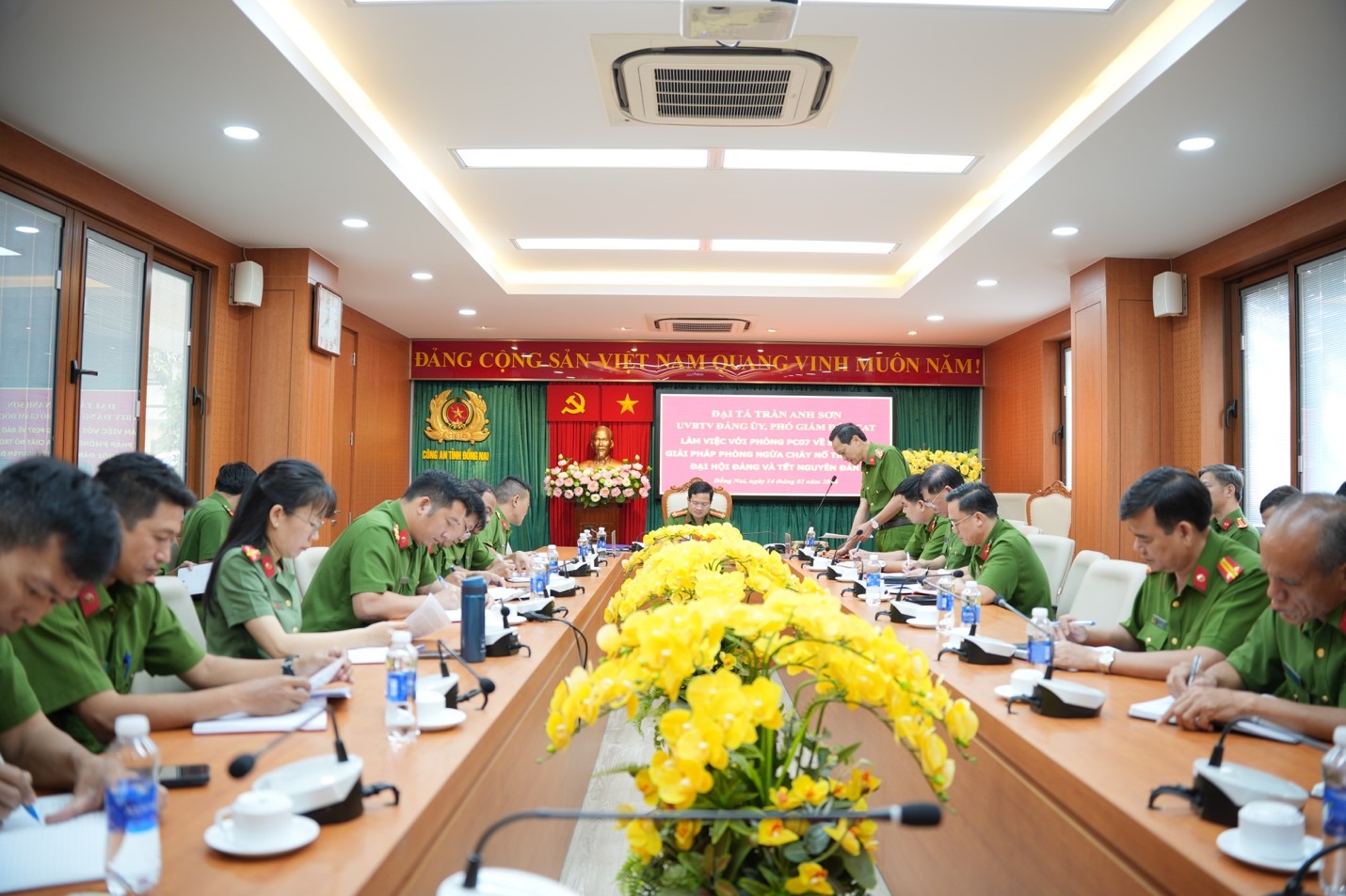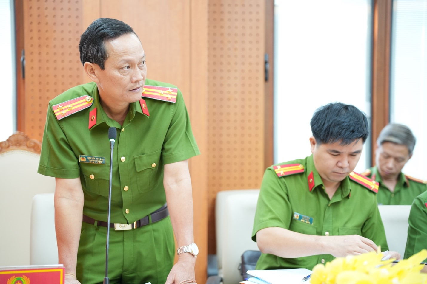 Đại tá Trần Anh Sơn, Phó Giám đốc Công an tỉnh phát biểu chỉ đạo buổi làm việc