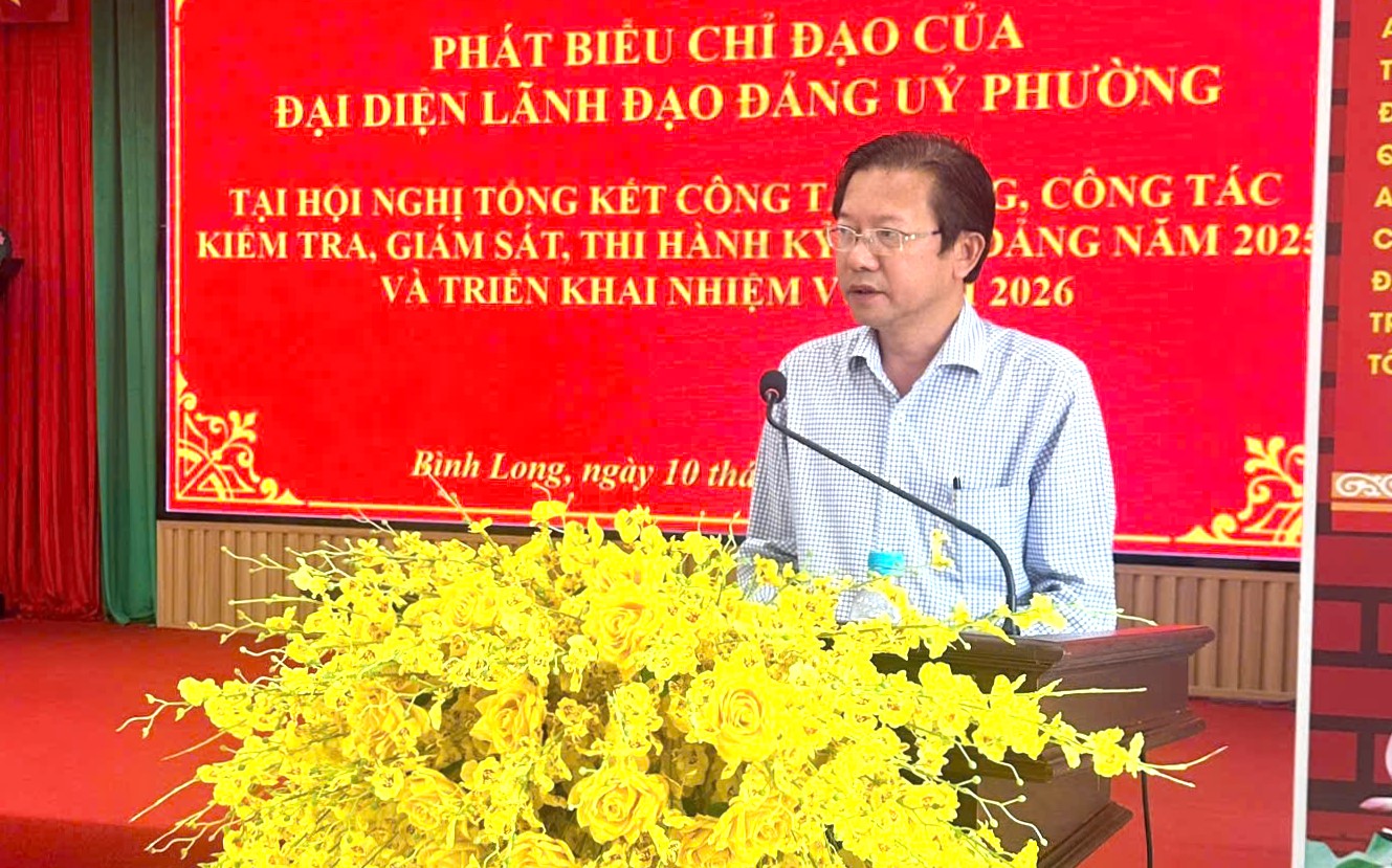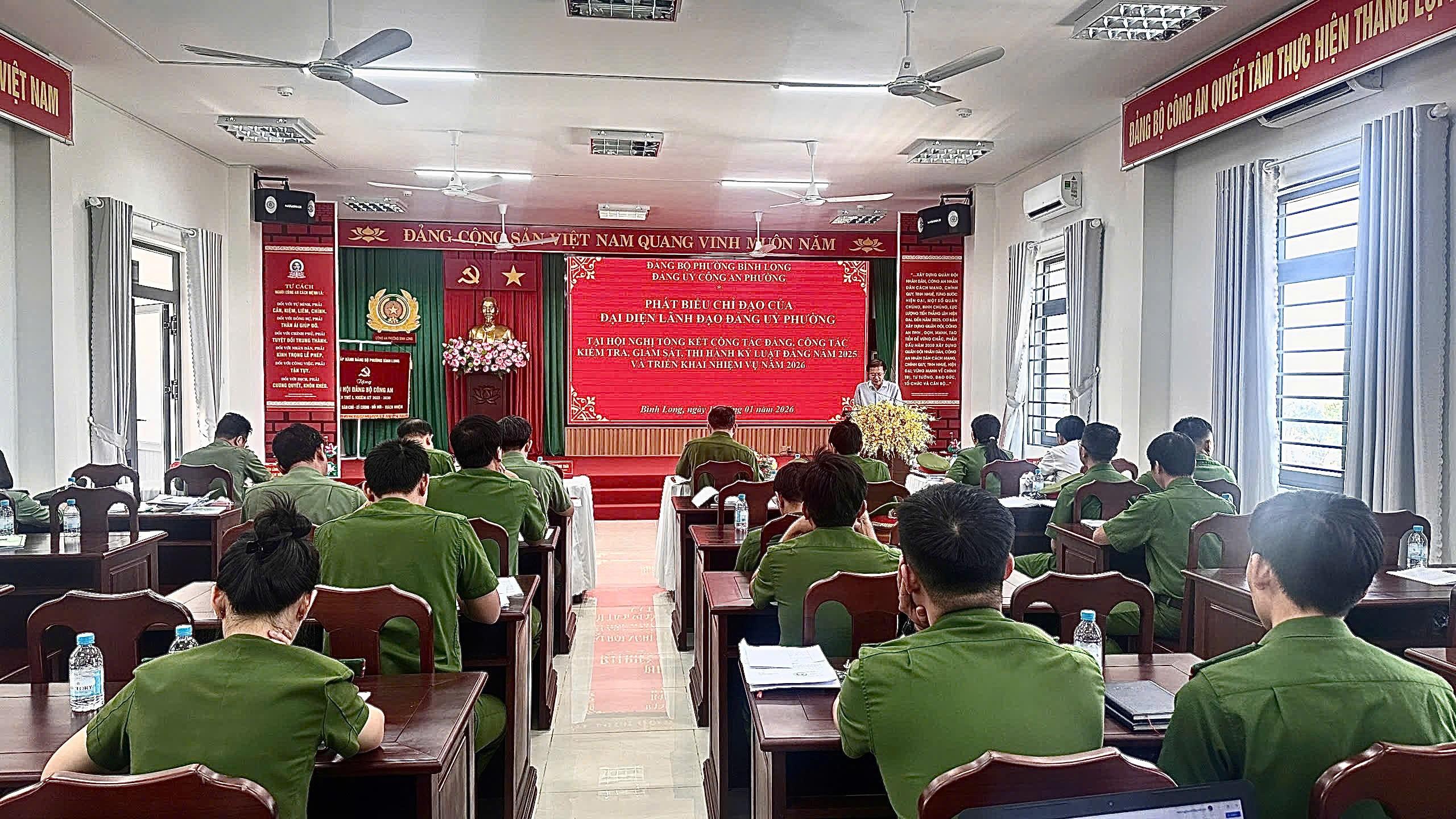 Hội nghị tổng kết công tác Đảng năm 2025 là dịp quan trọng để Đảng uỷ Công an phường Bình Long đánh giá kết quả đã đạt được, đề ra phương hướng, nhiệm vụ công tác Đảng năm 2026, góp phần xây dựng Đảng bộ trong sạch, vững mạnh, đáp ứng yêu cầu nhiệm vụ bảo đảm an ninh, trật tự trong tình hình mới.