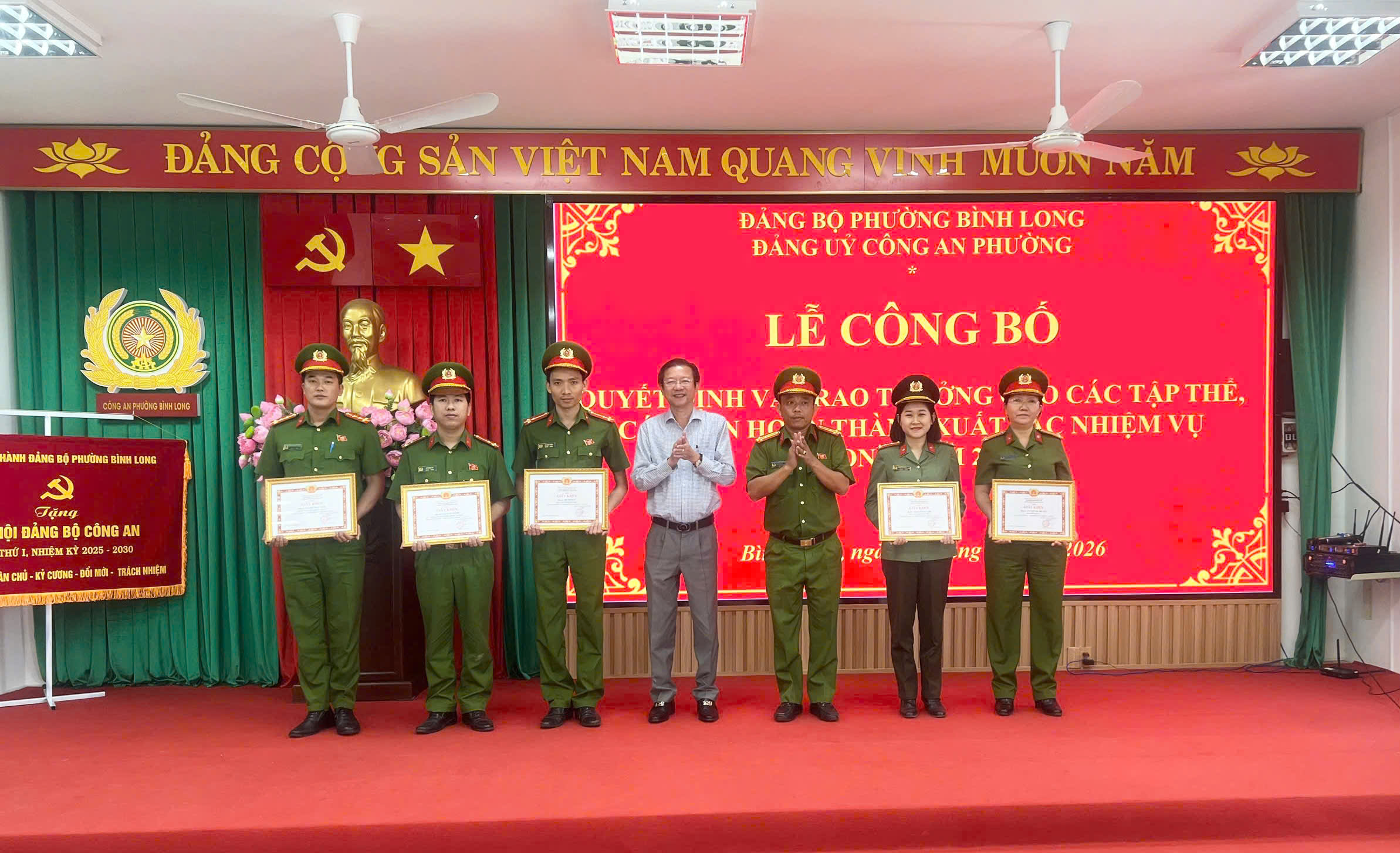 Nhân dịp này, Đảng uỷ Công an phường Bình Long đã biểu dương, khen thưởng tổ chức Đảng và đảng viên có thành tích tiêu biểu, xuất sắc trong công tác xây dựng Đảng và thực hiện nhiệm vụ chuyên môn năm 2025. Việc khen thưởng nhằm ghi nhận sự nỗ lực, tinh thần trách nhiệm của tập thể, cá nhân; đồng thời tạo động lực thúc đẩy cán bộ, đảng viên tiếp tục phấn đấu, hoàn thành tốt nhiệm vụ được giao trong thời gian tới.