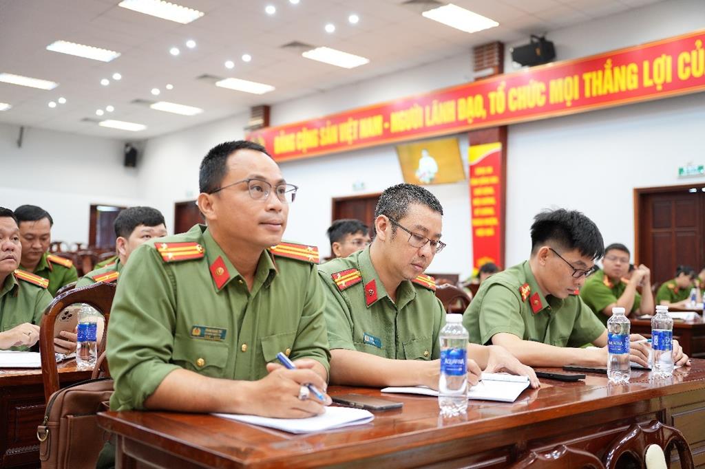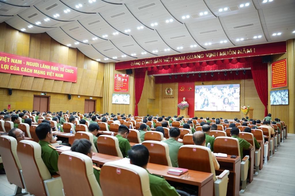Đại biểu dự trực tuyến tại Điểm cầu Công an tỉnh Đồng Nai về nghiên cứu, học tập, quán triệt và triển khai thực hiện Nghị quyết Hội nghị lần thứ hai Ban Chấp hành Trung ương Đảng khóa XIV do Bộ Chính trị, Ban Bí thư tổ chức