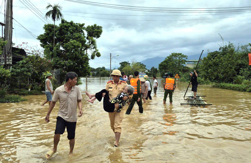Không chỉ dừng lại ở việc đảm bảo trật tự an toàn giao thông, trong suốt những ngày mưa bão và sau bão, những CBCS CAND đã không quản ngại hiểm nguy, trực tiếp lăn xả giữa mưa lũ để giúp dân khắc phục hậu quả thiên tai.