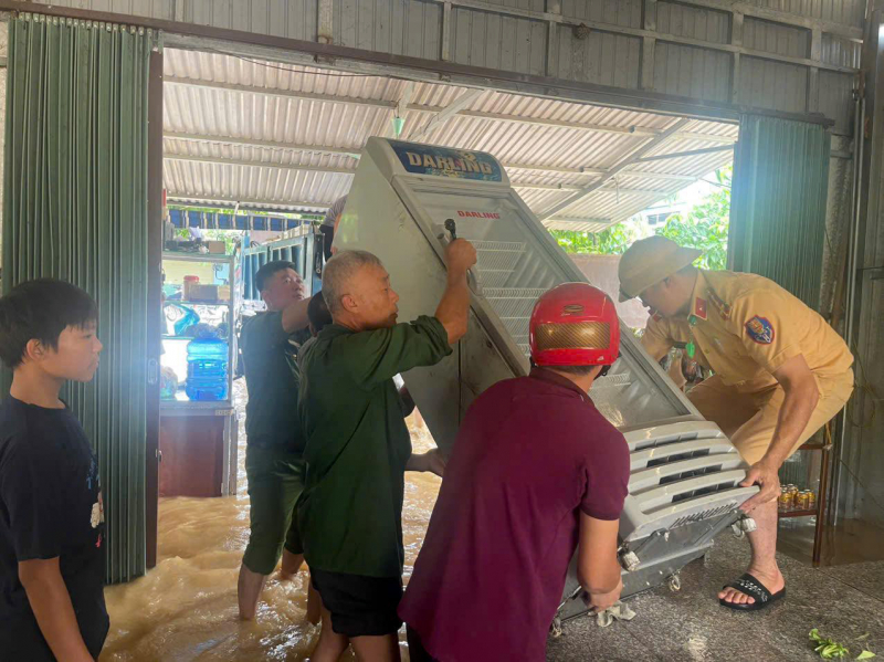 Hình ảnh các CBCS CSGT cùng lực lượng Công an cơ sở lội nước, giúp người dân di dời tài sản, kê cao đồ đạc chống lũ đã trở nên quen thuộc. Các tổ công tác đã làm việc không ngừng nghỉ, dọn dẹp cây đổ, bùn đất trên đường để nhanh chóng thông tuyến; đồng thời, hỗ trợ các phương tiện bị ngập và hướng dẫn người dân đi lại an toàn. Đặc biệt, công tác tuyên truyền, vận động và đưa người già, trẻ nhỏ tại các khu vực có nguy cơ cao bị sạt lở, lũ ống đến nơi an toàn đã được thực hiện quyết liệt và kịp thời.