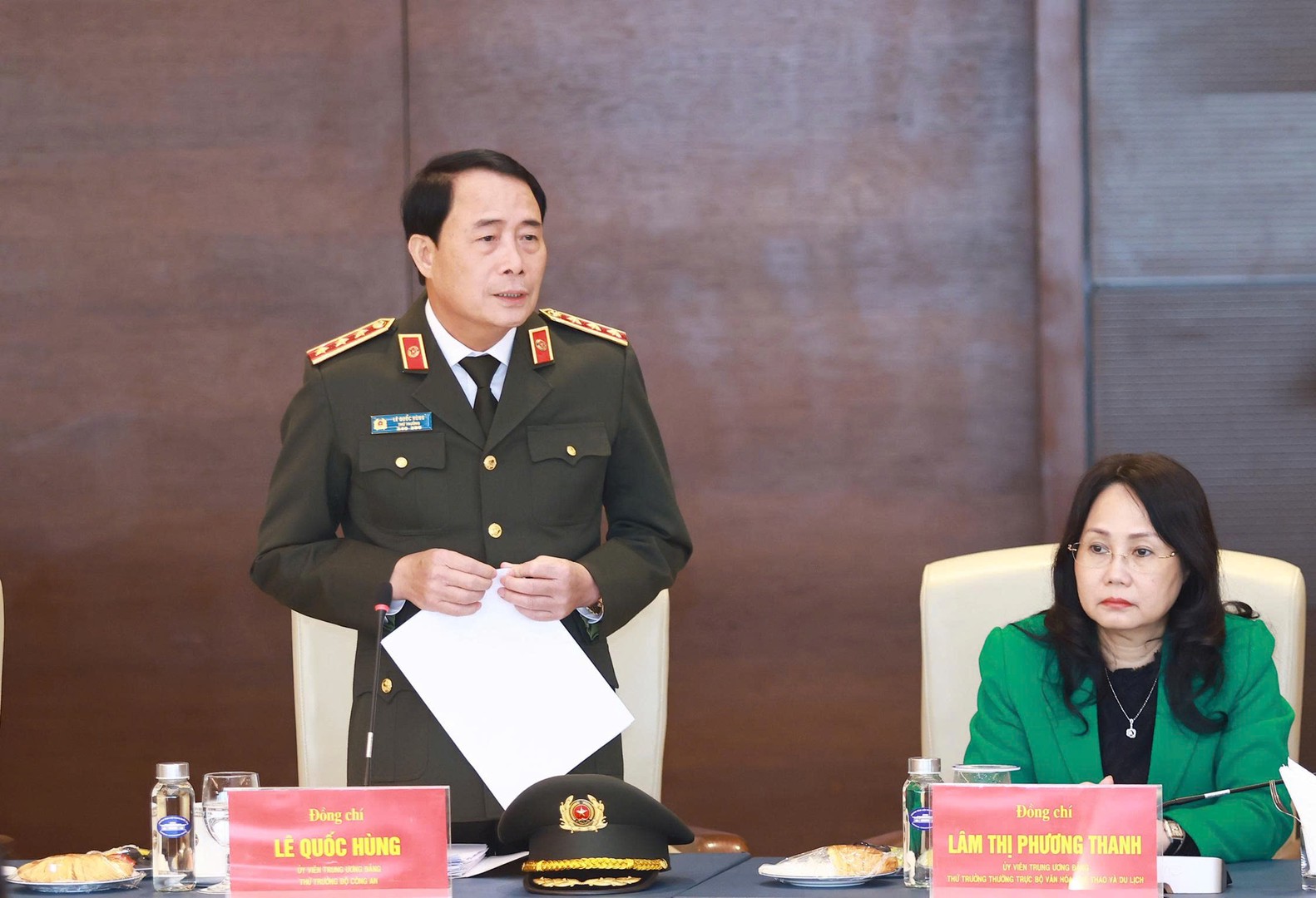 Phát biểu tại cuộc họp, Thượng tướng Lê Quốc Hùng, Ủy viên Trung ương Đảng, Thứ trưởng Bộ Công an đã báo cáo các mặt công tác đảm bảo an ninh, trật tự phục vụ Đại hội XIV của Đảng. Thứ trưởng Lê Quốc Hùng khẳng định, các đơn vị của Bộ Công an đang chủ động bám sát tình hình thực tế, chủ động phòng ngừa và sẵn sàng xử lý kịp thời tình huống phát sinh, không để bị động, bất ngờ.