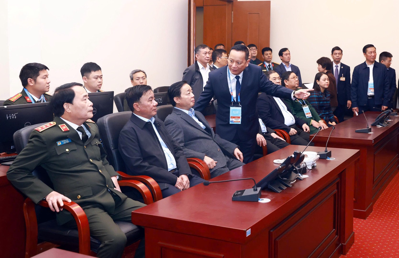 Các đại biểu thăm Trung tâm Chỉ huy Bộ Công an tại Trung tâm Hội nghị Quốc gia.