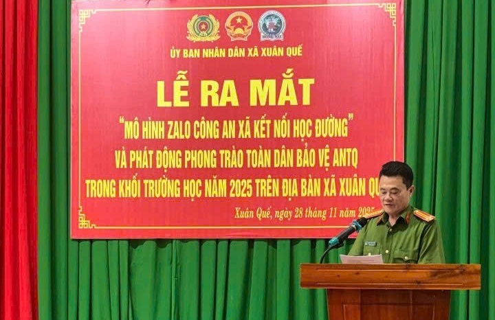 Đ/c Trung tá Phạm Đăng Tuấn - Trưởng Công an xã thông qua Quyết định thành lập mô hình “Zalo Công an xã kết nối học đường”