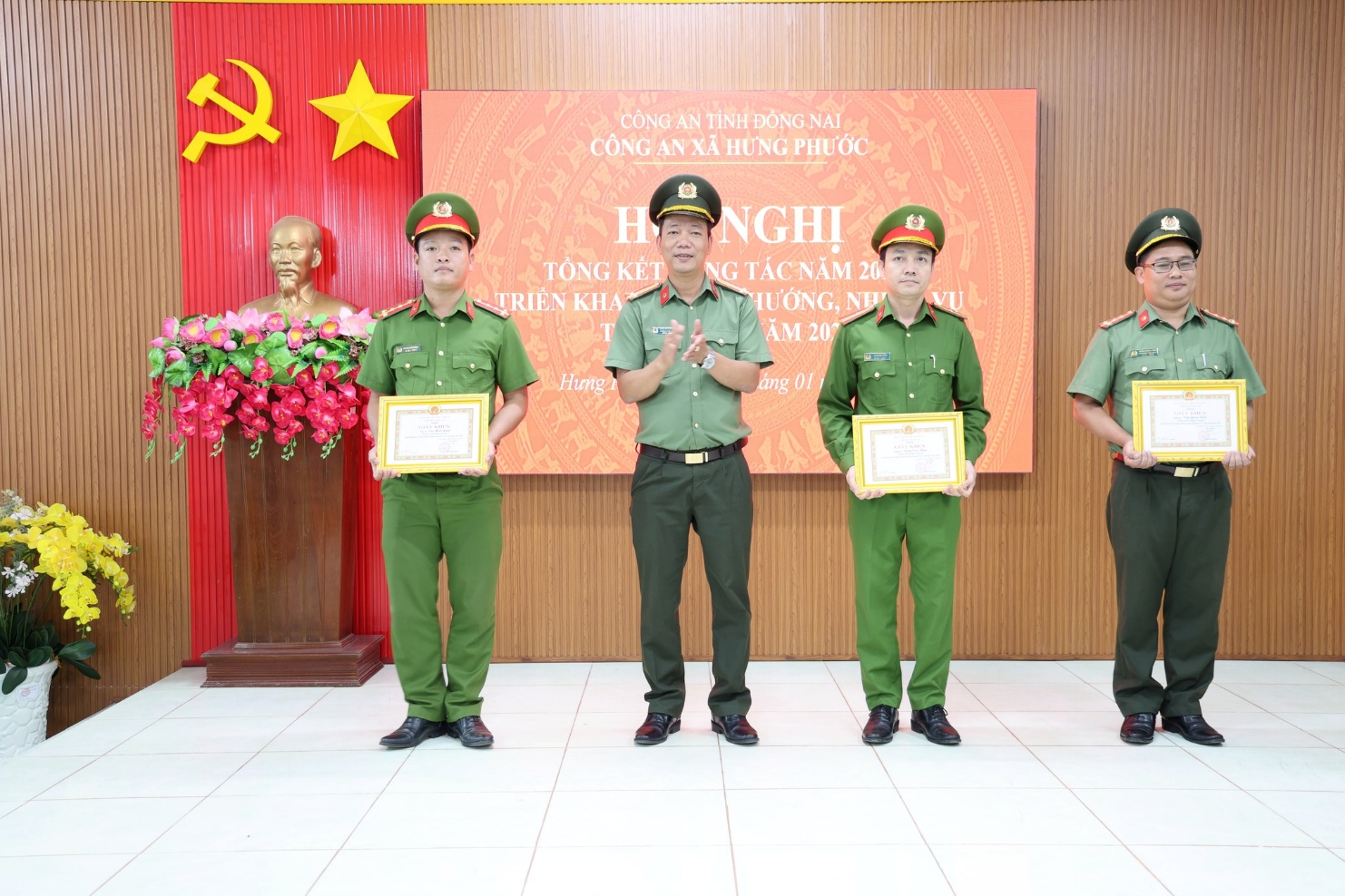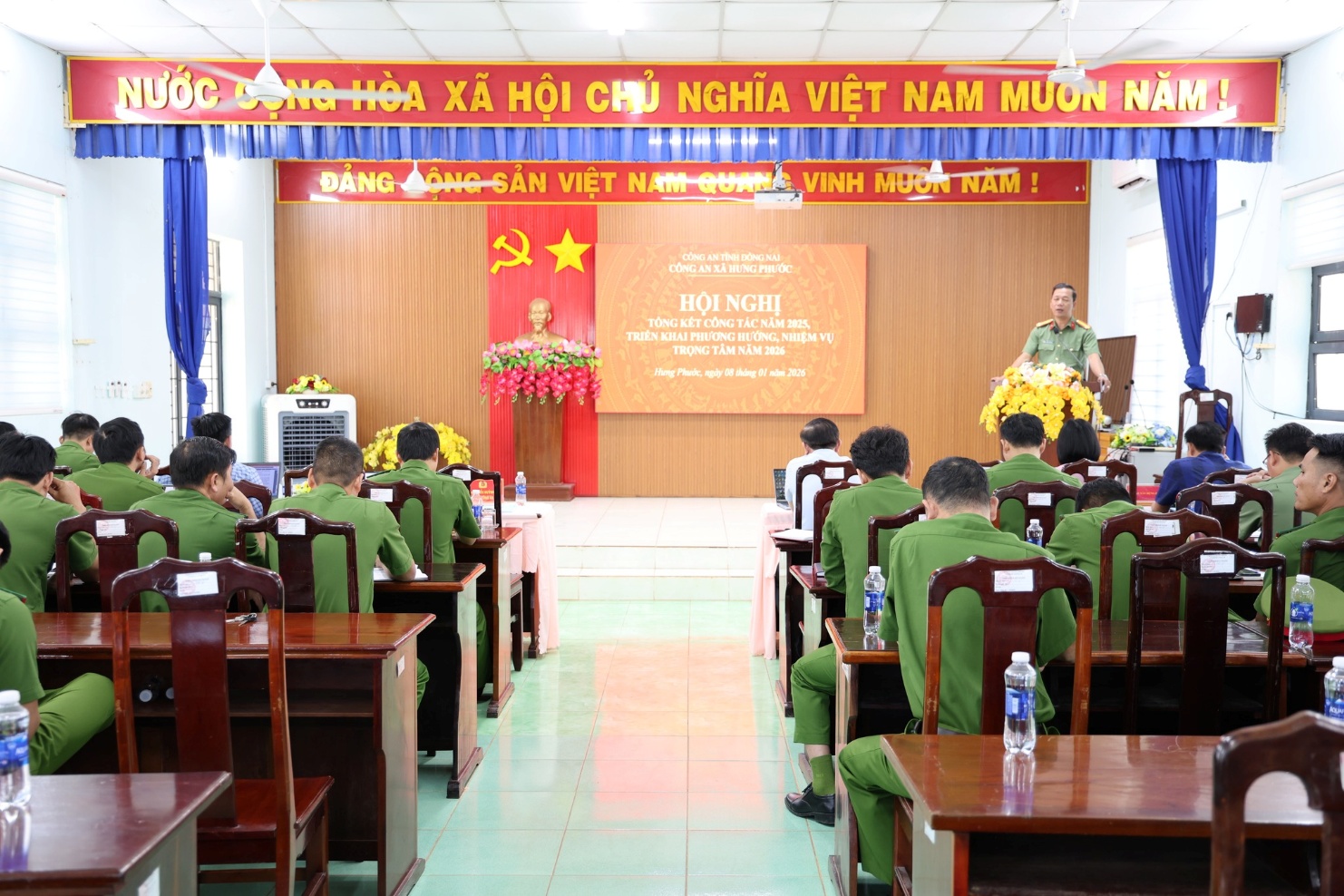 Trong năm 2025, Công an xã Hưng Phước đã tập trung lãnh đạo, chỉ đạo toàn diện các mặt công tác, đảm bảo an ninh trật tự, xây dựng Đảng, xây dựng lực lượng và hậu cần. Công tác giáo dục chính trị tư tưởng được chú trọng, gắn với đẩy mạnh học tập và làm theo tư tưởng, đạo đức, phong cách Hồ Chí Minh; nâng cao chất lượng sinh hoạt chi bộ, năng lực lãnh đạo và sức chiến đấu của tổ chức Đảng. Đồng thời, tổ chức nhiều hoạt động văn hóa, thể thao, dân vận, góp phần xây dựng hình ảnh người chiến sĩ Công an gần dân, vì dân.